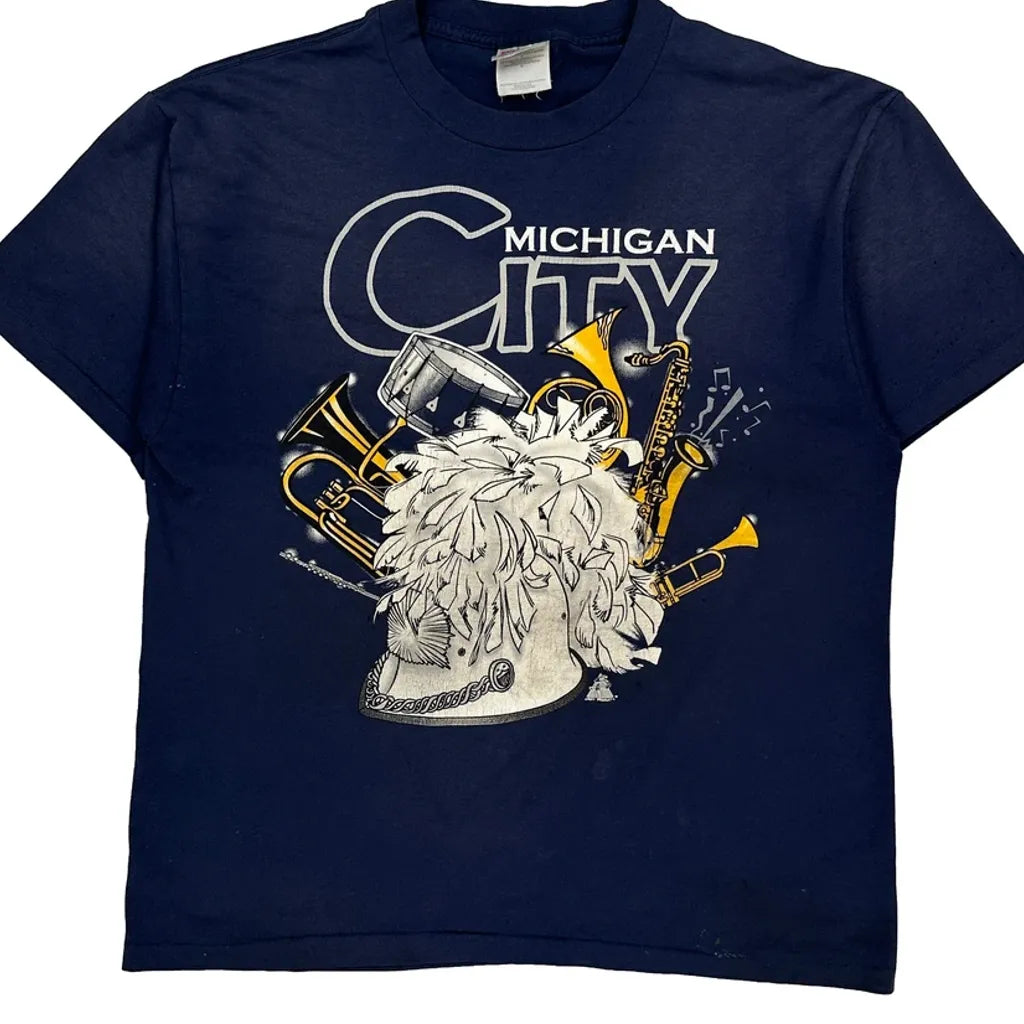 Michigan City Hanes Graphic T-Shirt - Large Navy Cotton Blend