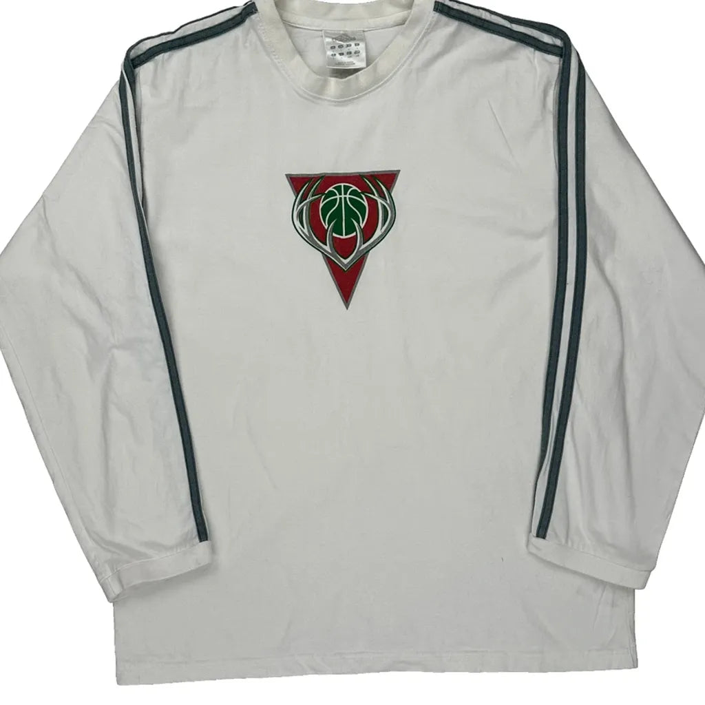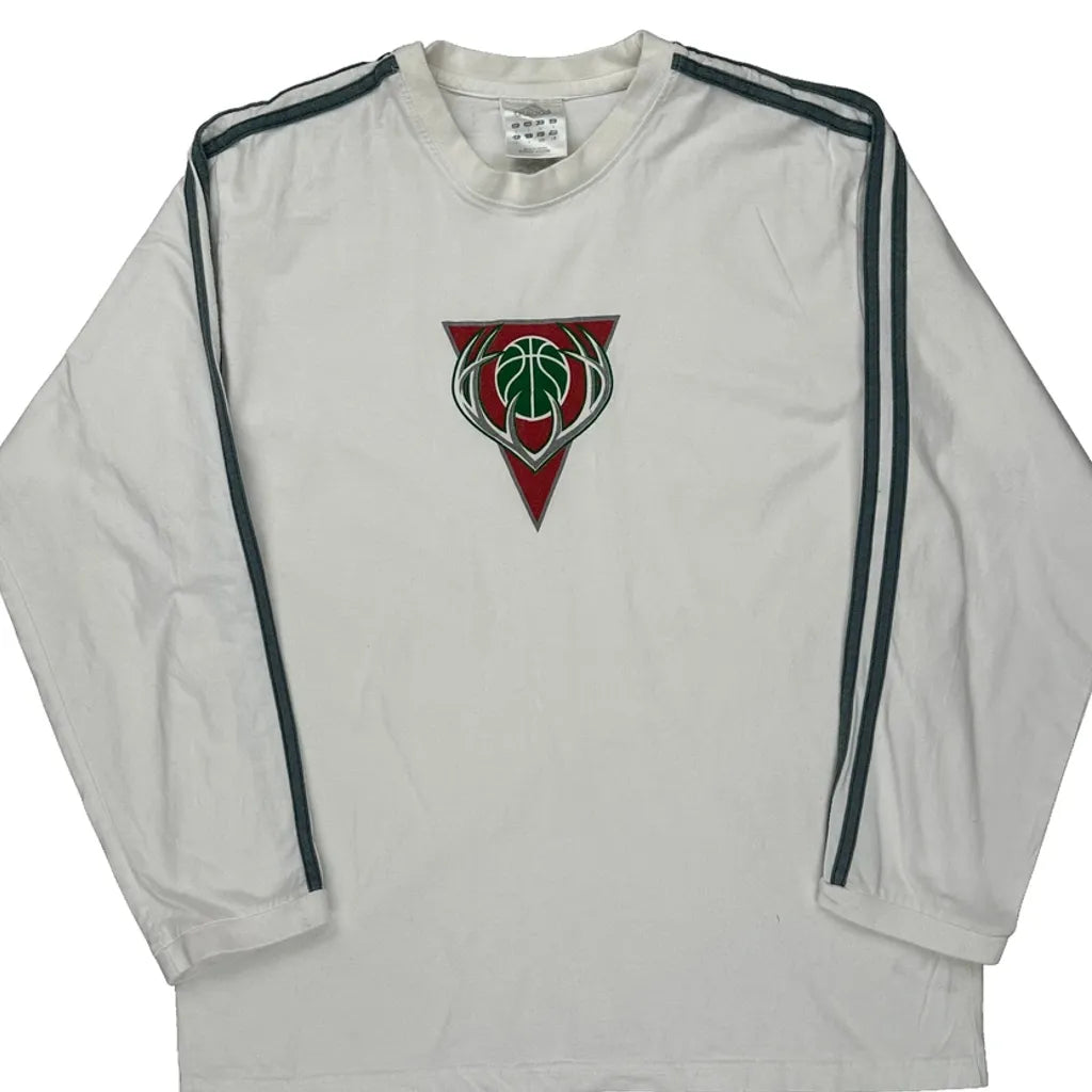 Milwaukee Bucks Adidas Long Sleeve T-Shirt - Large White Cotton