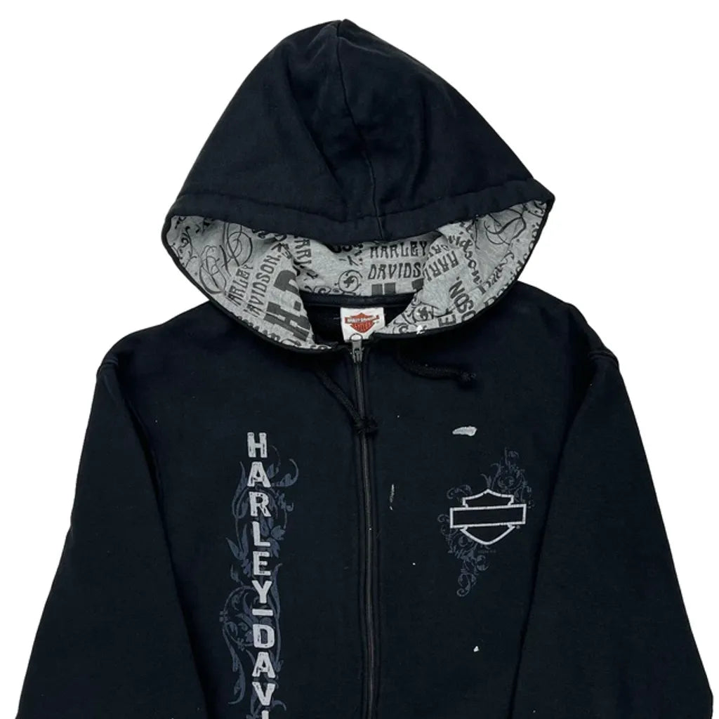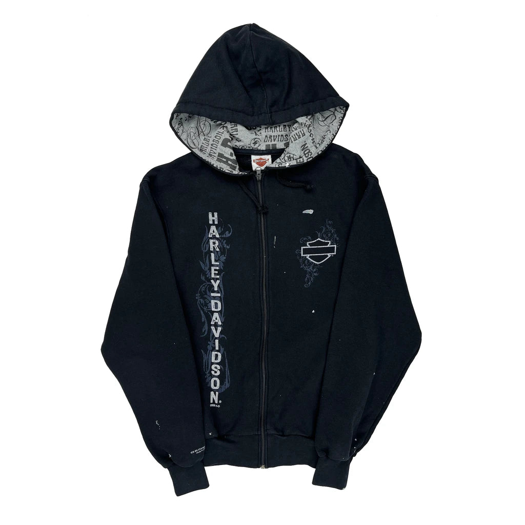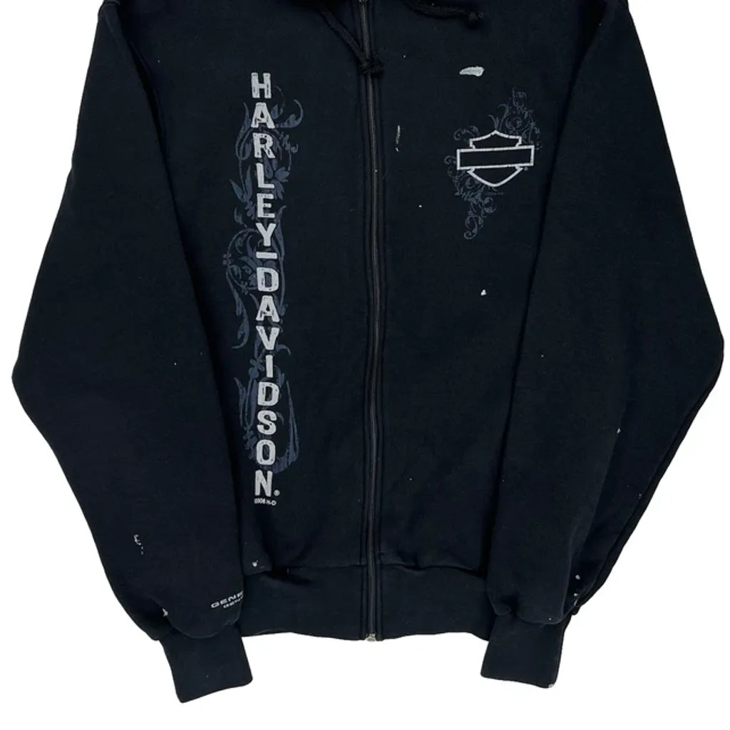 Harley Davidson Hoodie With Zipper And Text Print, Some Marks Present, Paint Splatters All Over