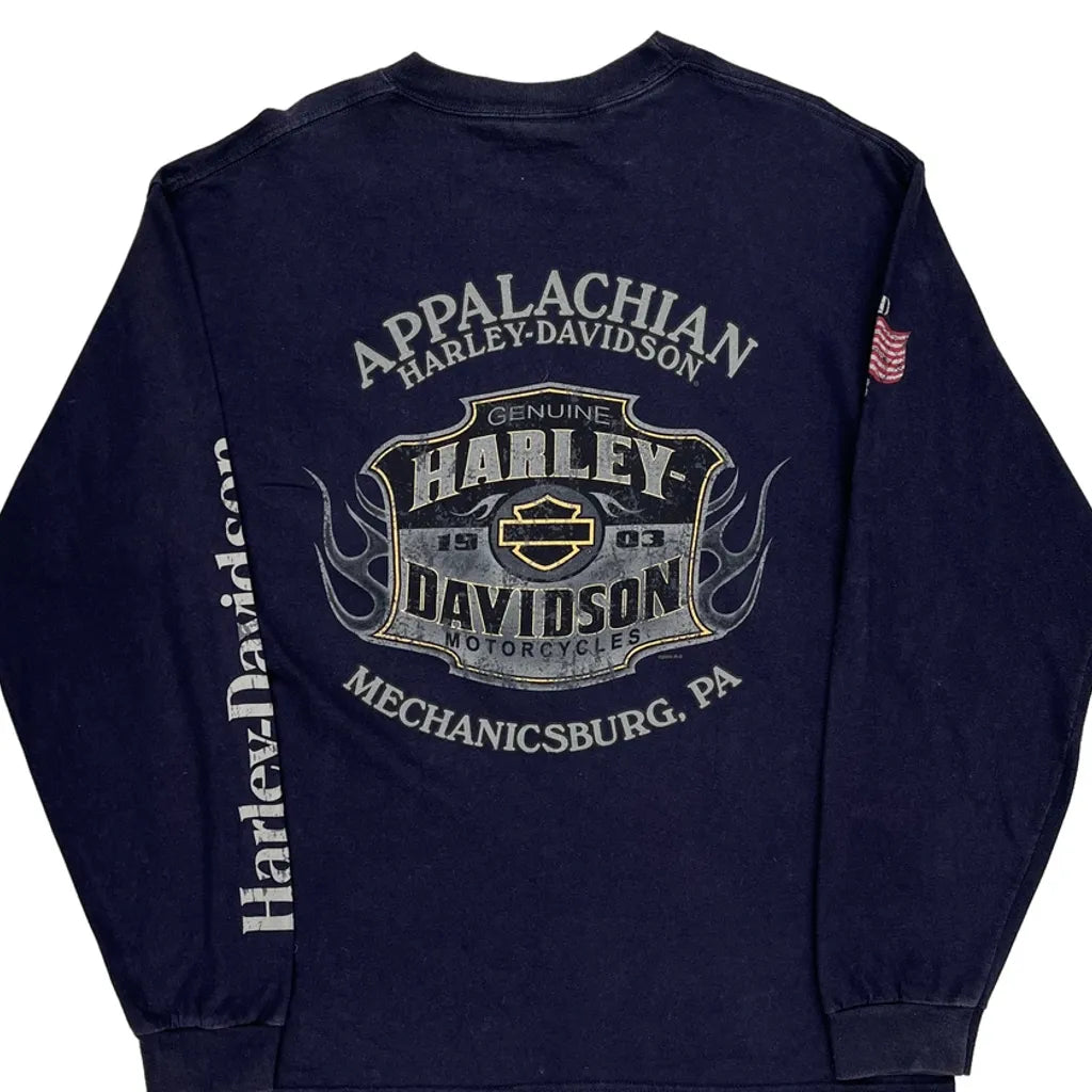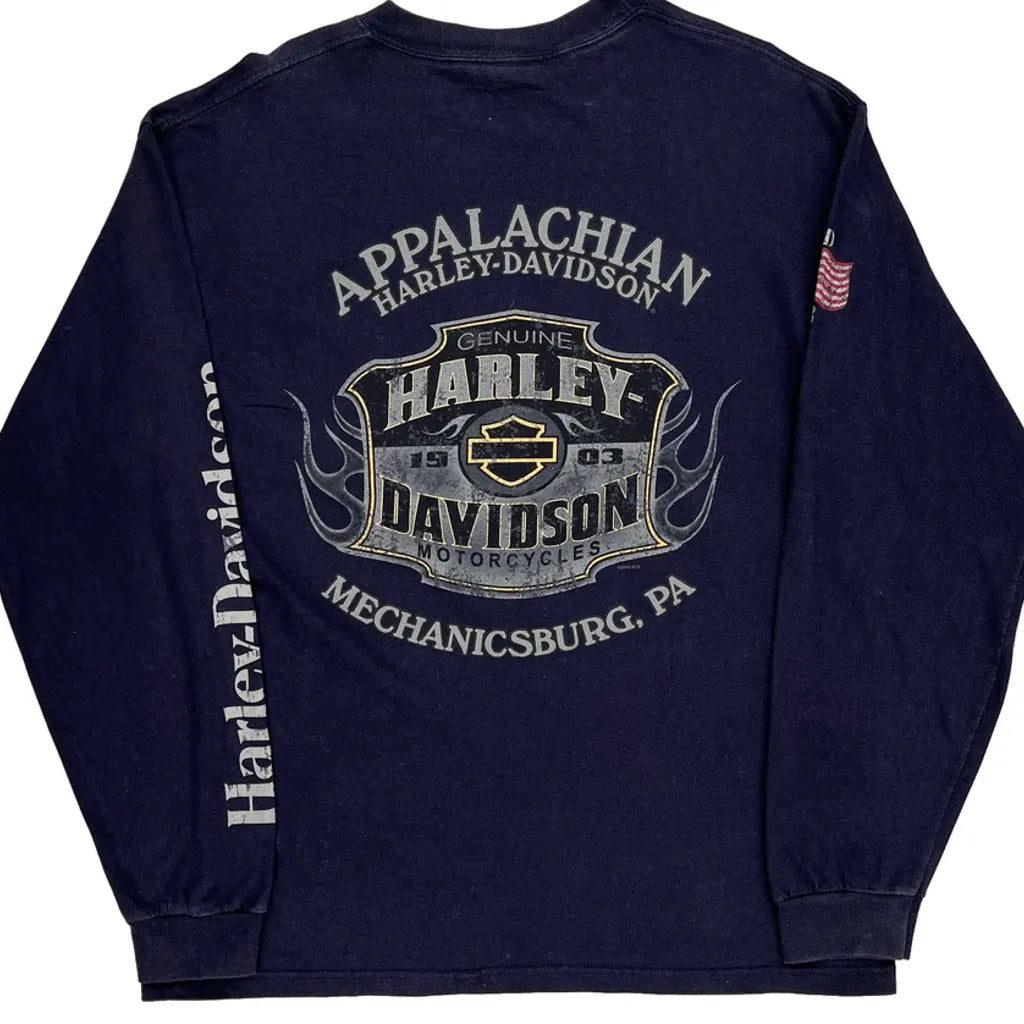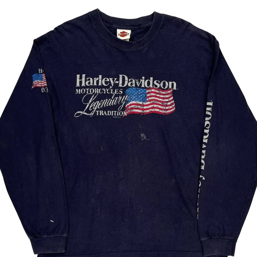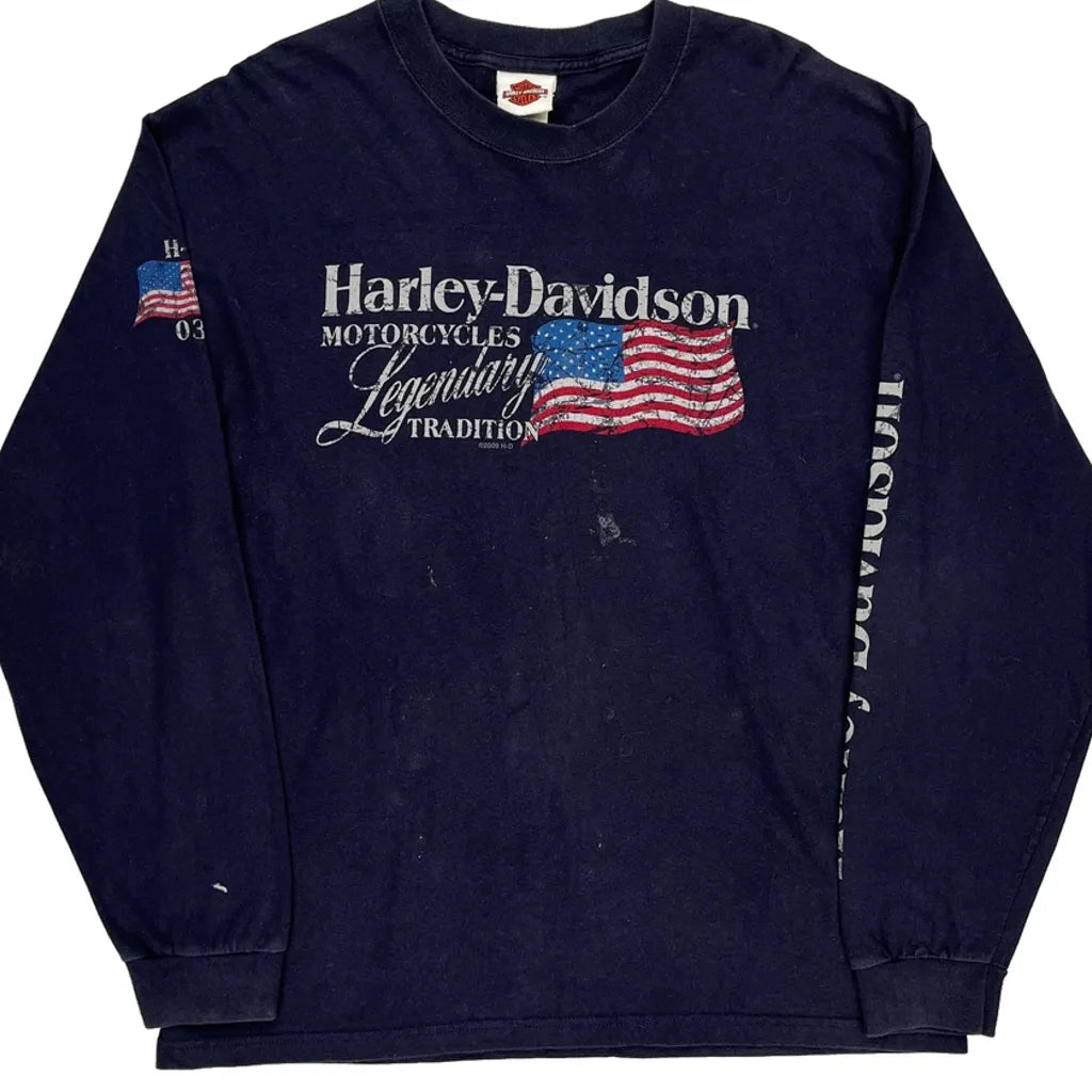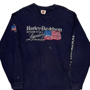 Motorcycles Harley Davidson Graphic Long Sleeve T-Shirt - Large Navy Cotton
