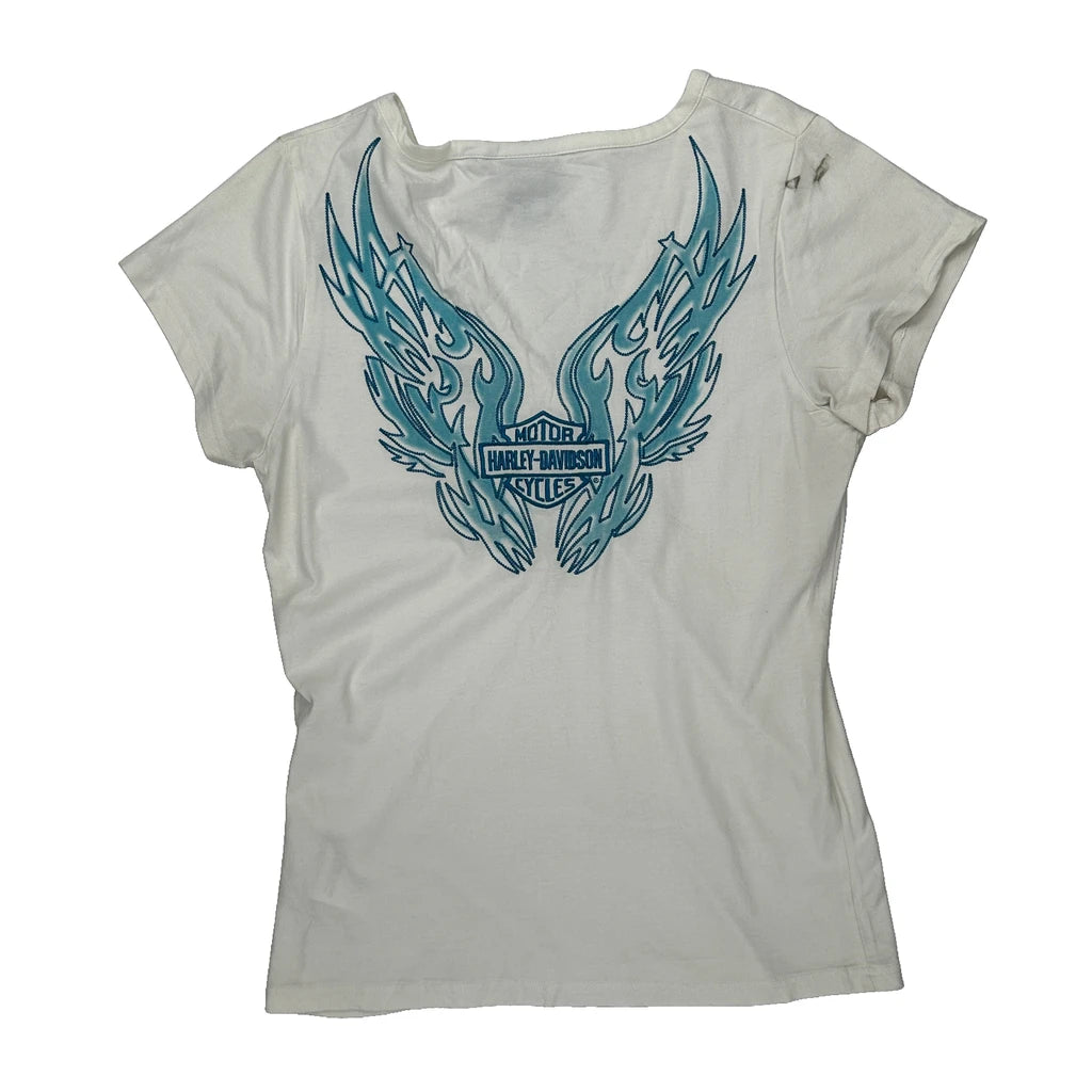 Harley Davidson T-Shirt With Graphic Design On Back, Minor Marks On Sleeve
