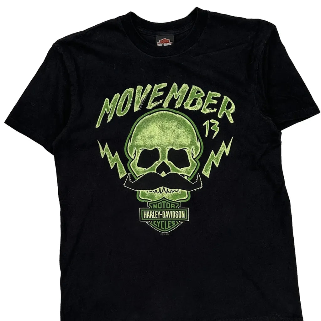 Movember Harley Davidson Graphic T-Shirt - Large Black Cotton