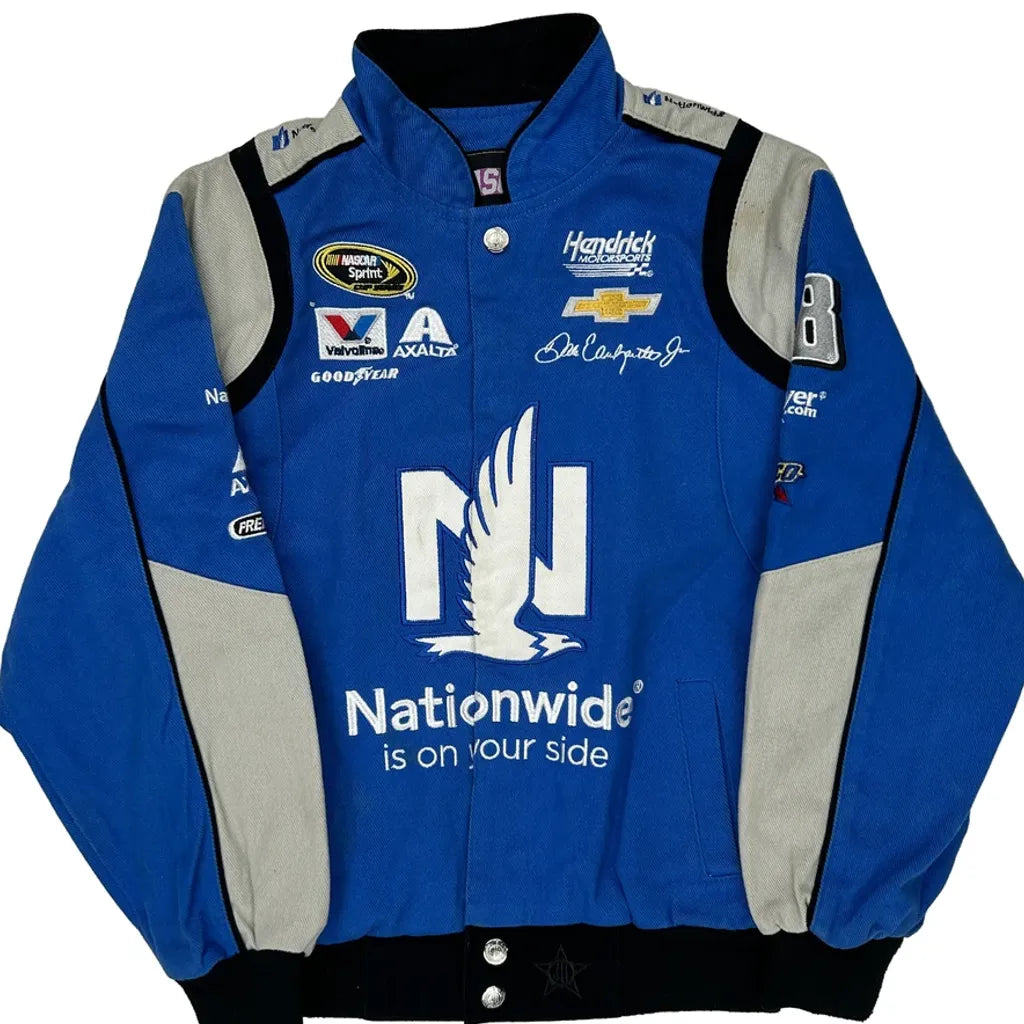 Blue Nascar Bomber Jacket With Nationwide Branding.