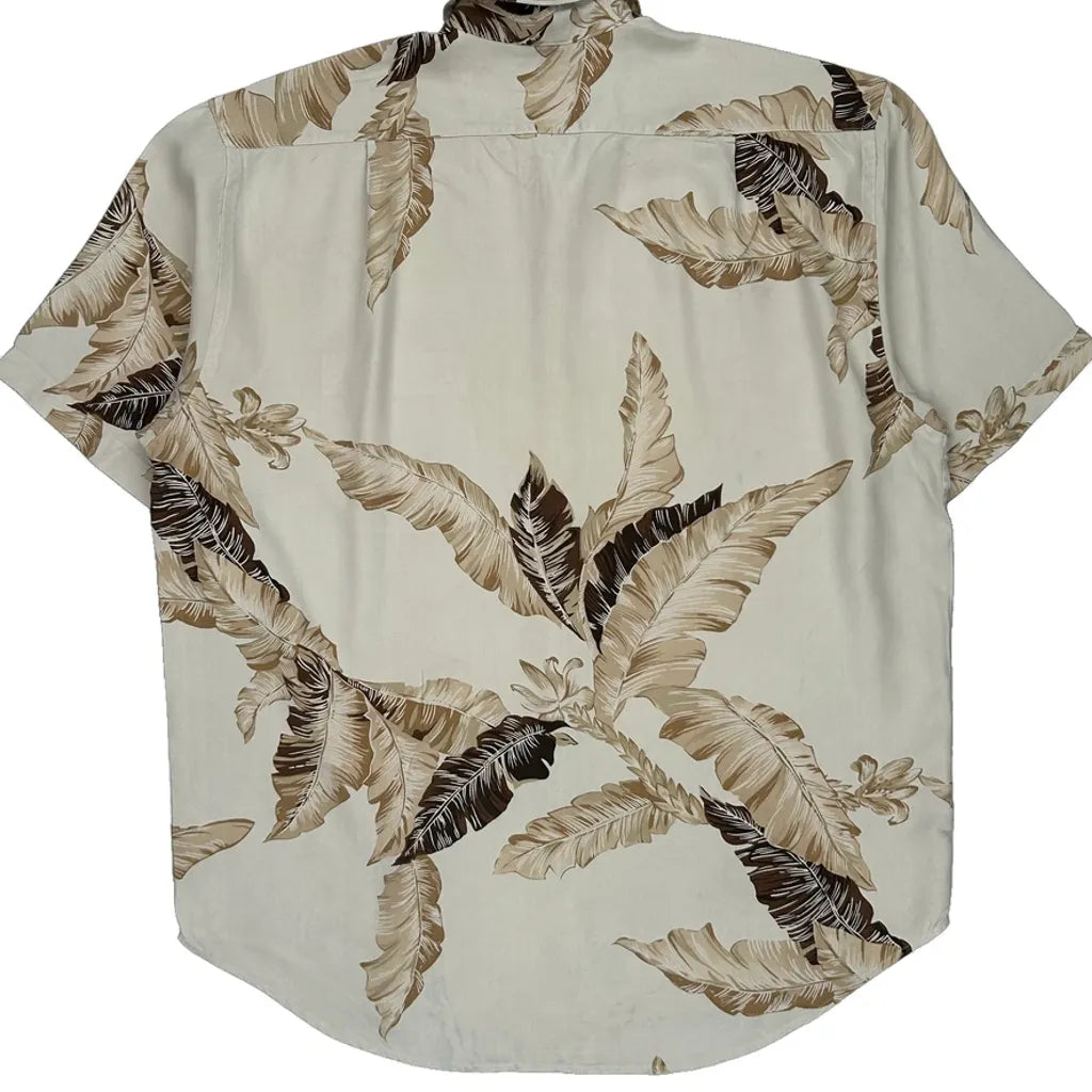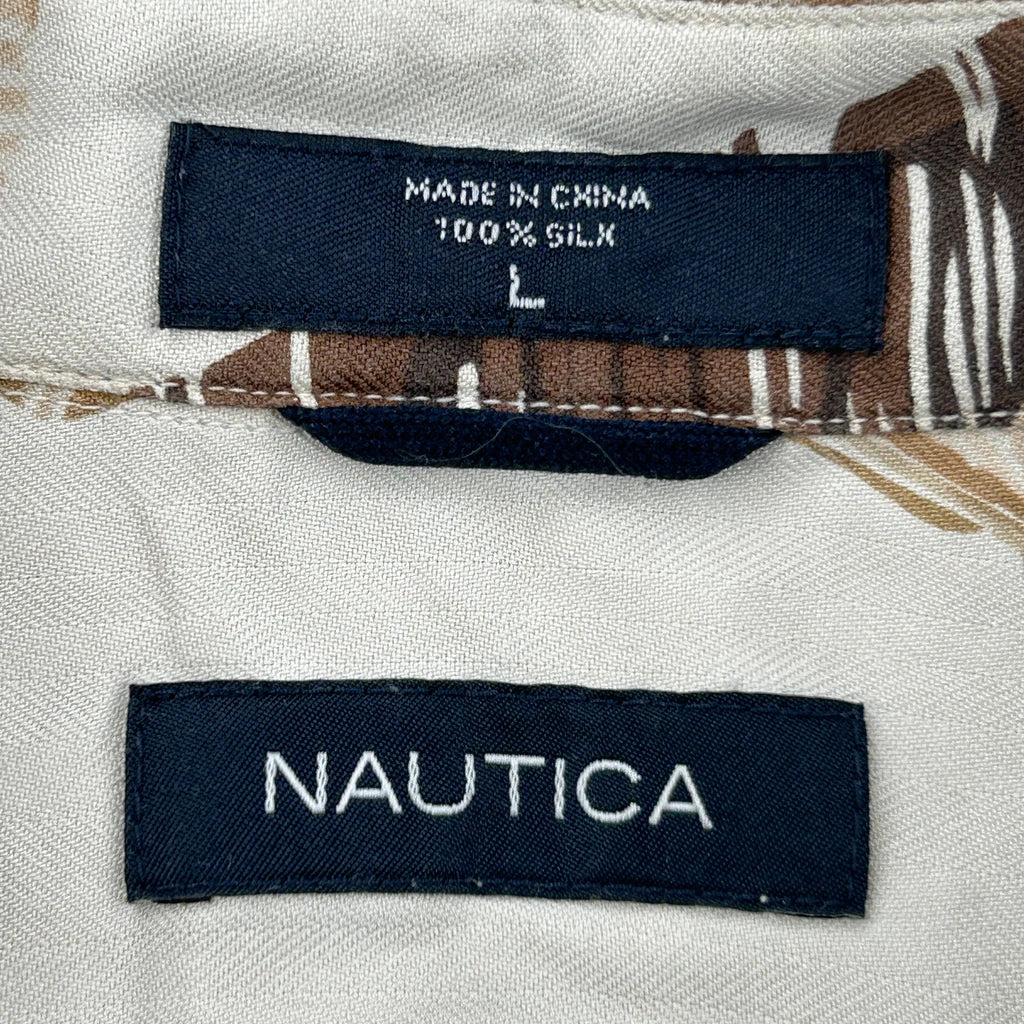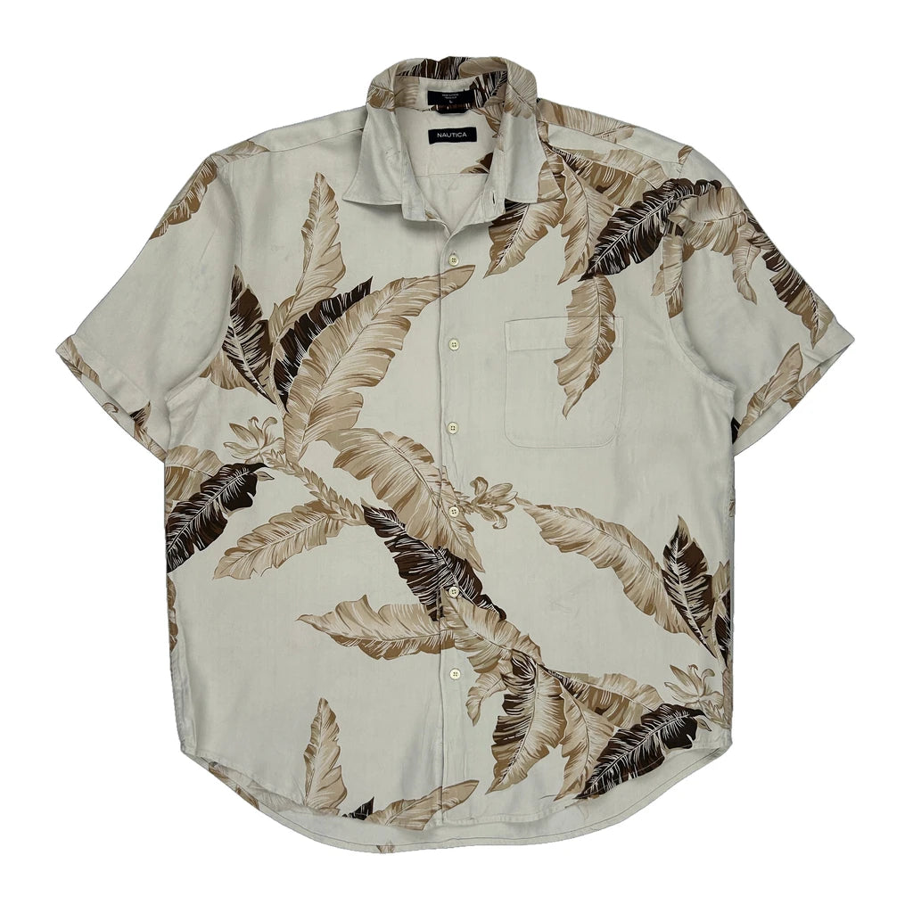 Nautica Hawaiian Shirt - Large Cream Silk