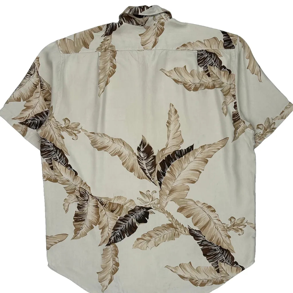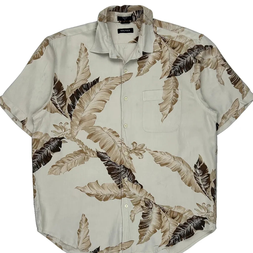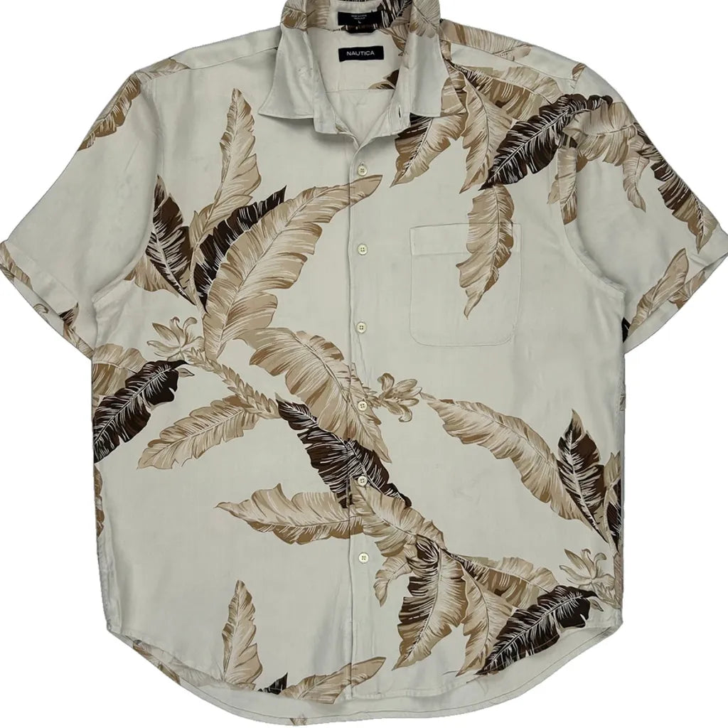 Nautica Hawaiian Shirt - Large Cream Silk