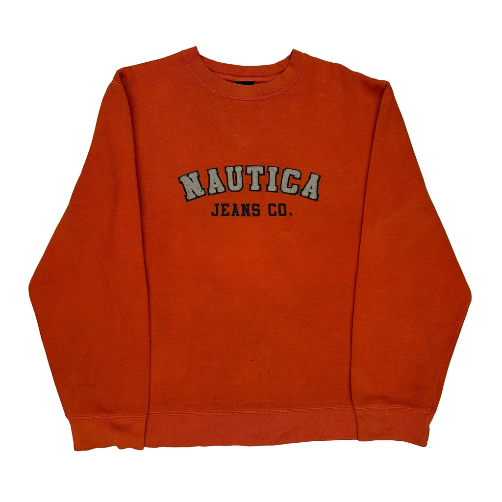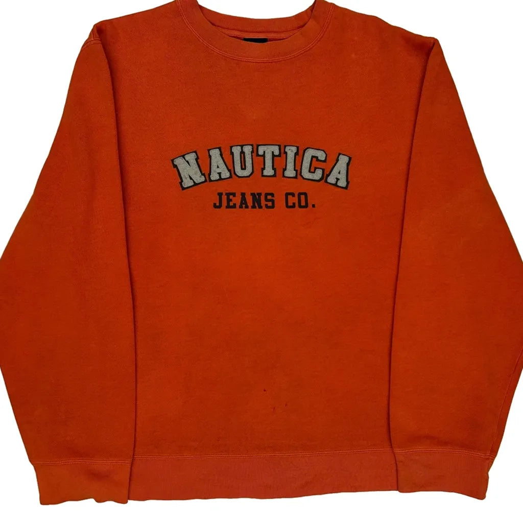 Nautica Spellout Sweatshirt - Large Orange Cotton Blend