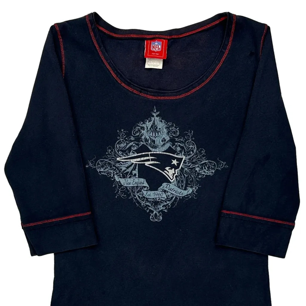 New England Patriots Nfl Football Long Sleeve T-Shirt - Medium Navy Cotton