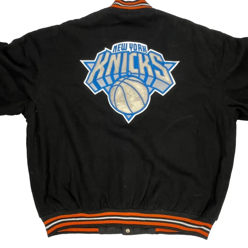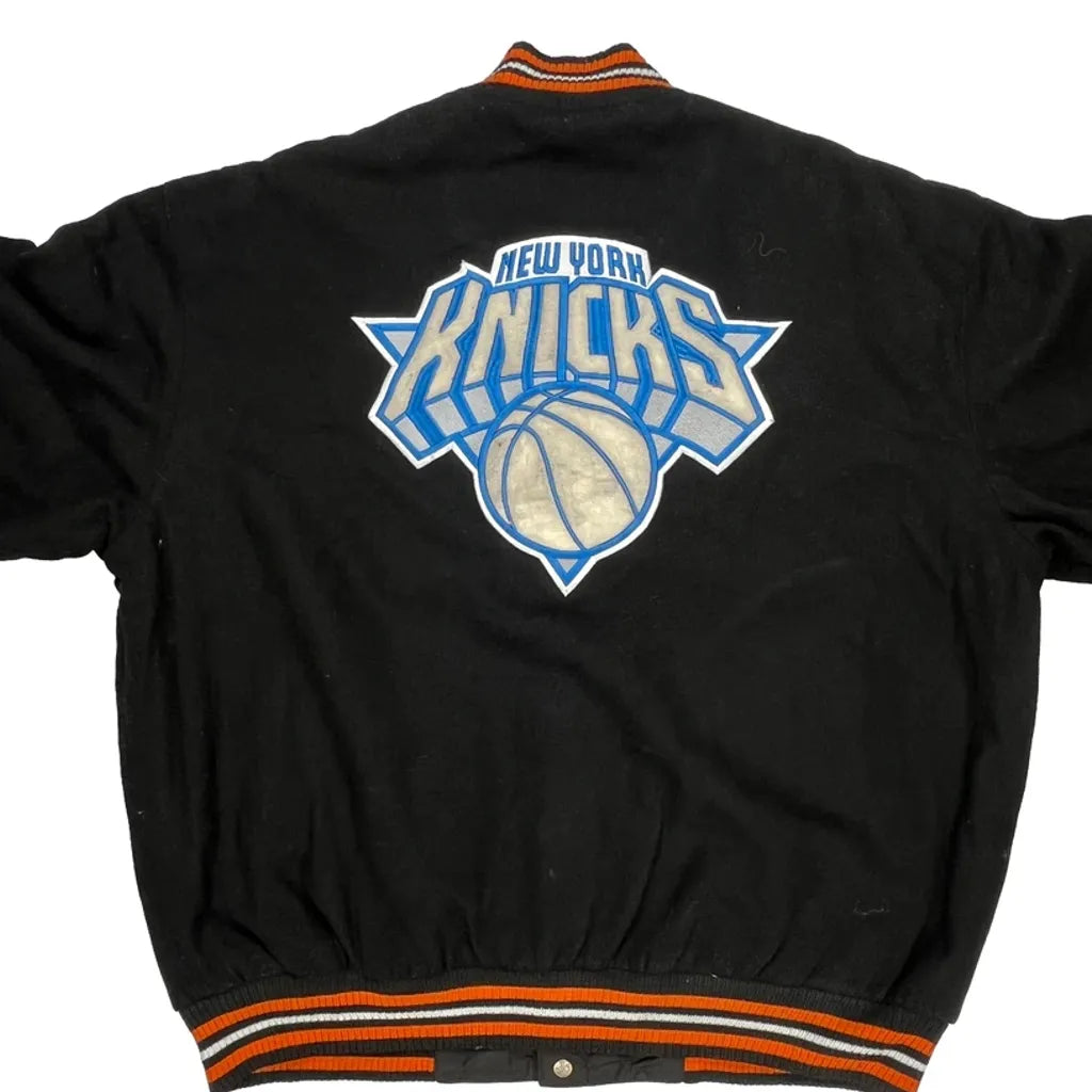 New York Knicks Nba Graphic Varsity Jacket - 4XL Black Cotton Blend