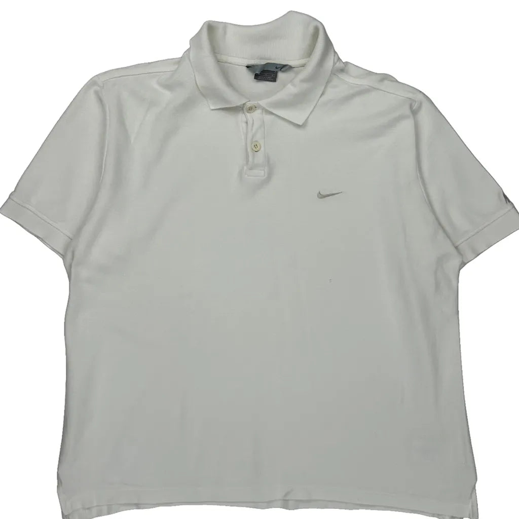 Nike Polo Shirt - Medium White Cotton