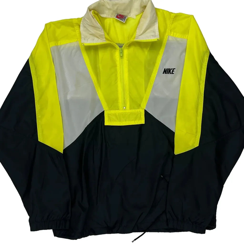 Vintage Nike Windbreaker With Yellow, Black, And White Color Blocks.