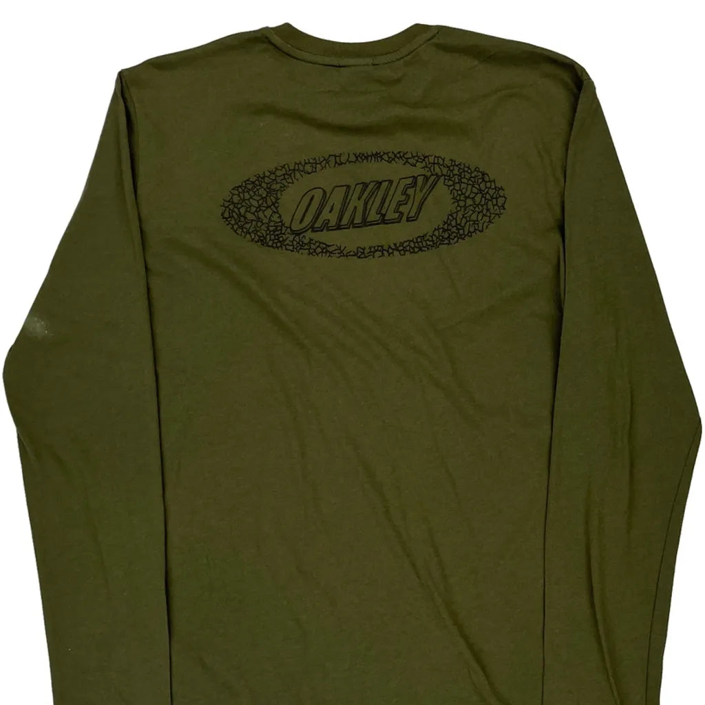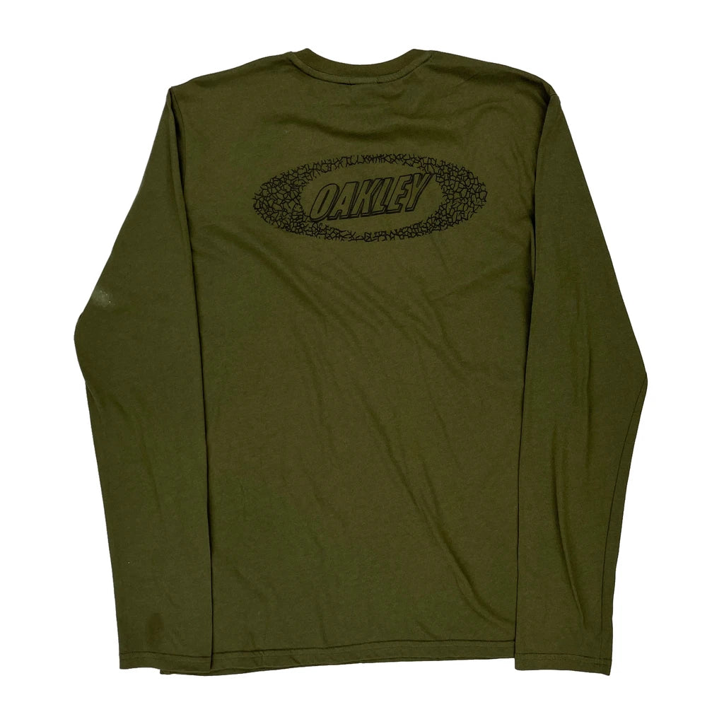 Oakley Spellout Long Sleeve T-Shirt - Large Khaki Cotton