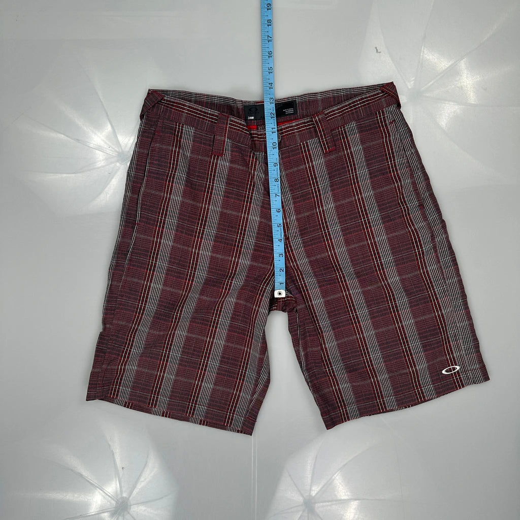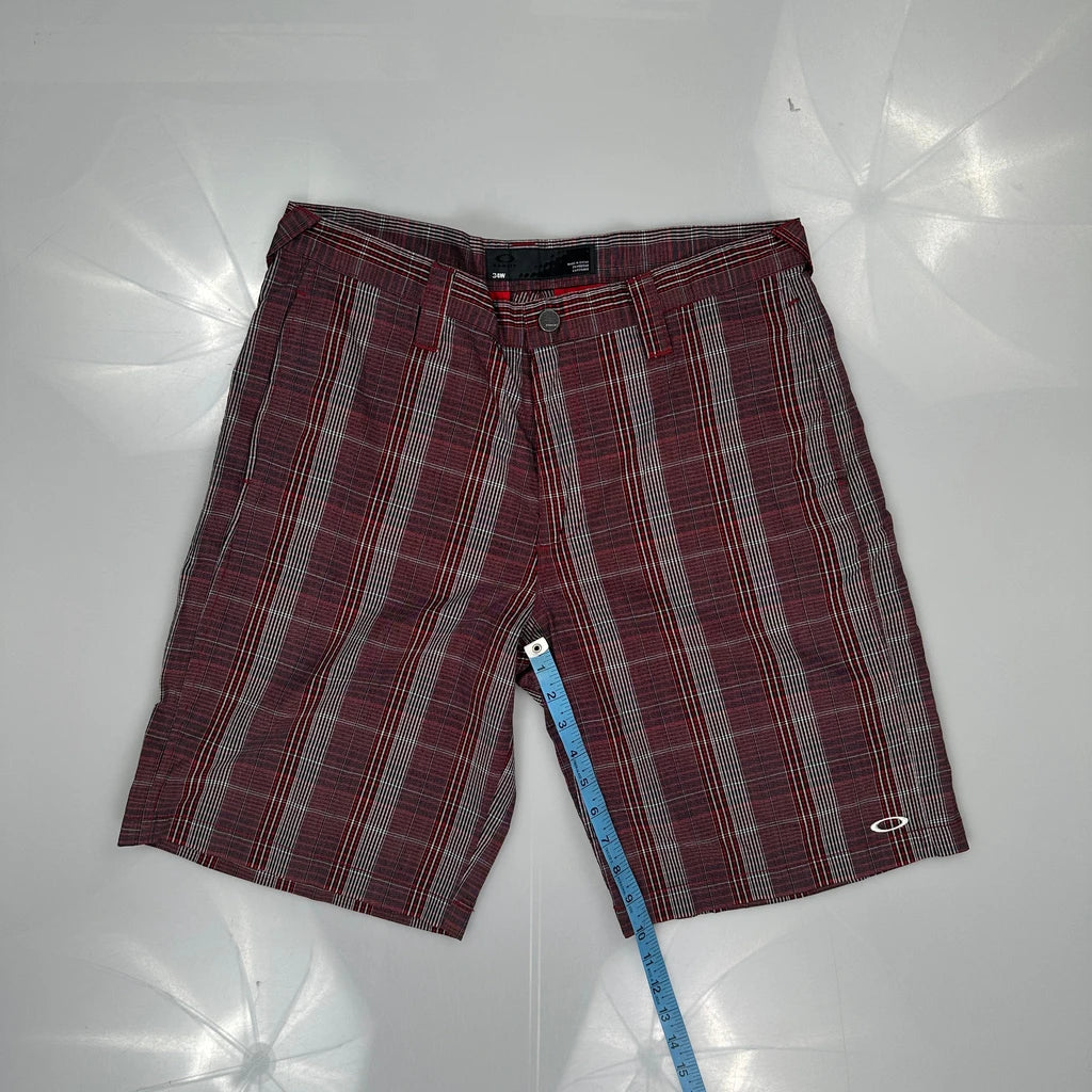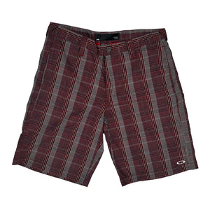Red And Grey Checked Shorts With Oakley Logo