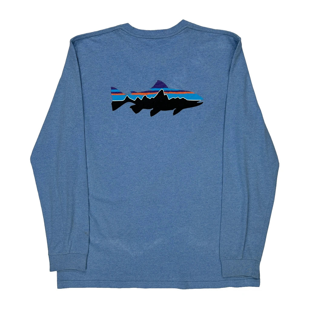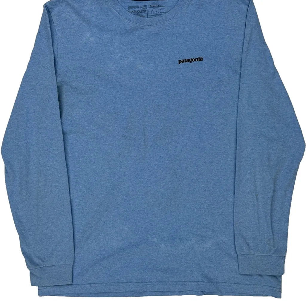 Patagonia Graphic Long Sleeve T-Shirt - Large Blue Cotton Blend