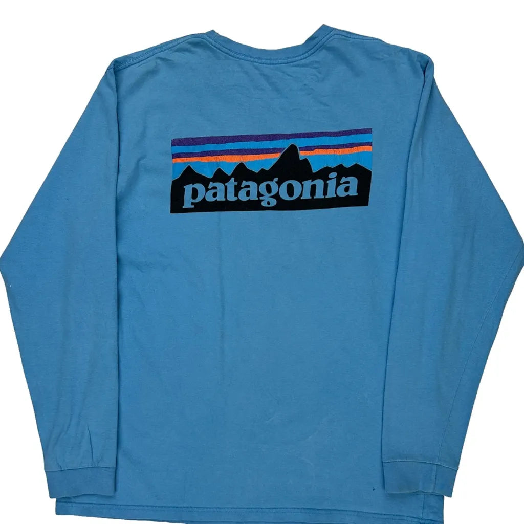 Patagonia Long Sleeve T-Shirt - Large Blue Cotton