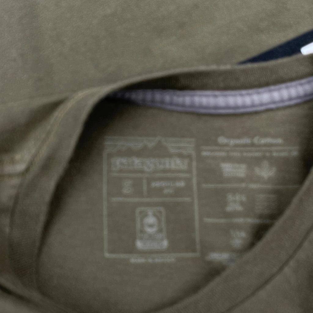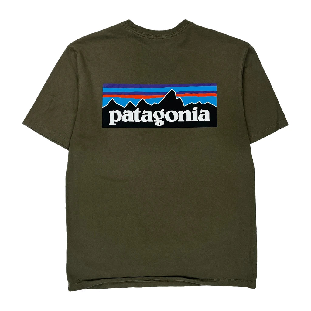 Olive Green Patagonia T-Shirt With Small Logo On Front And Large Logo On Back.