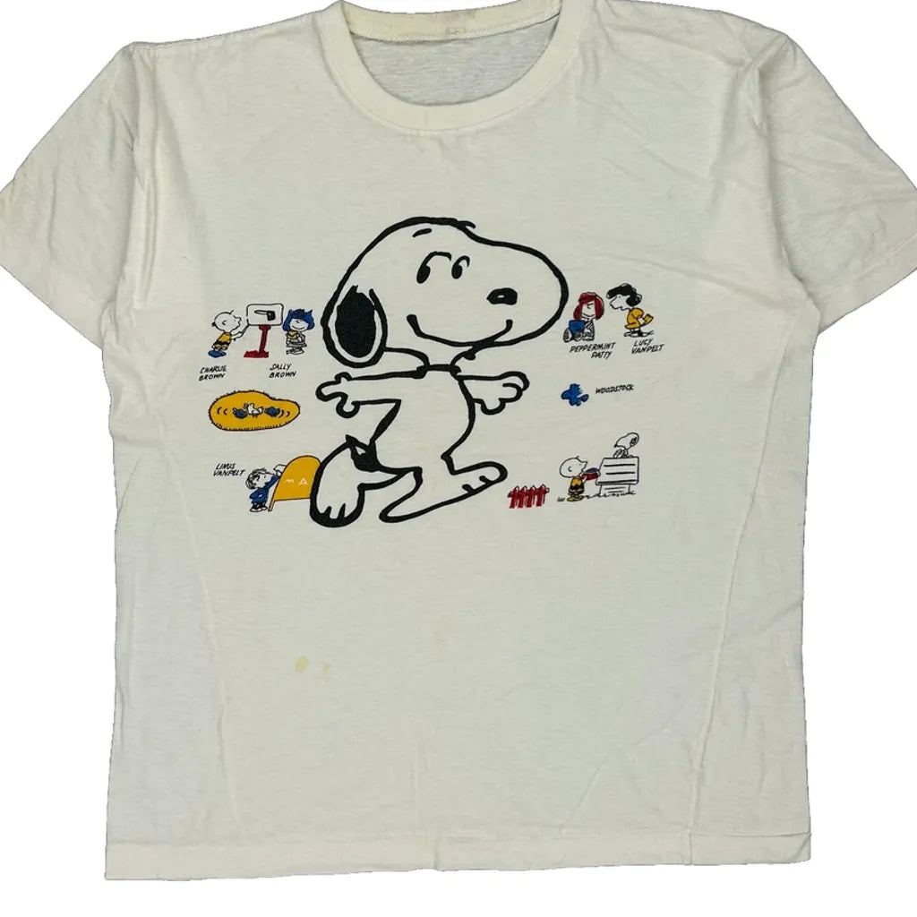 Peanuts Snoopy Single Stitch T-Shirt - Large White Cotton