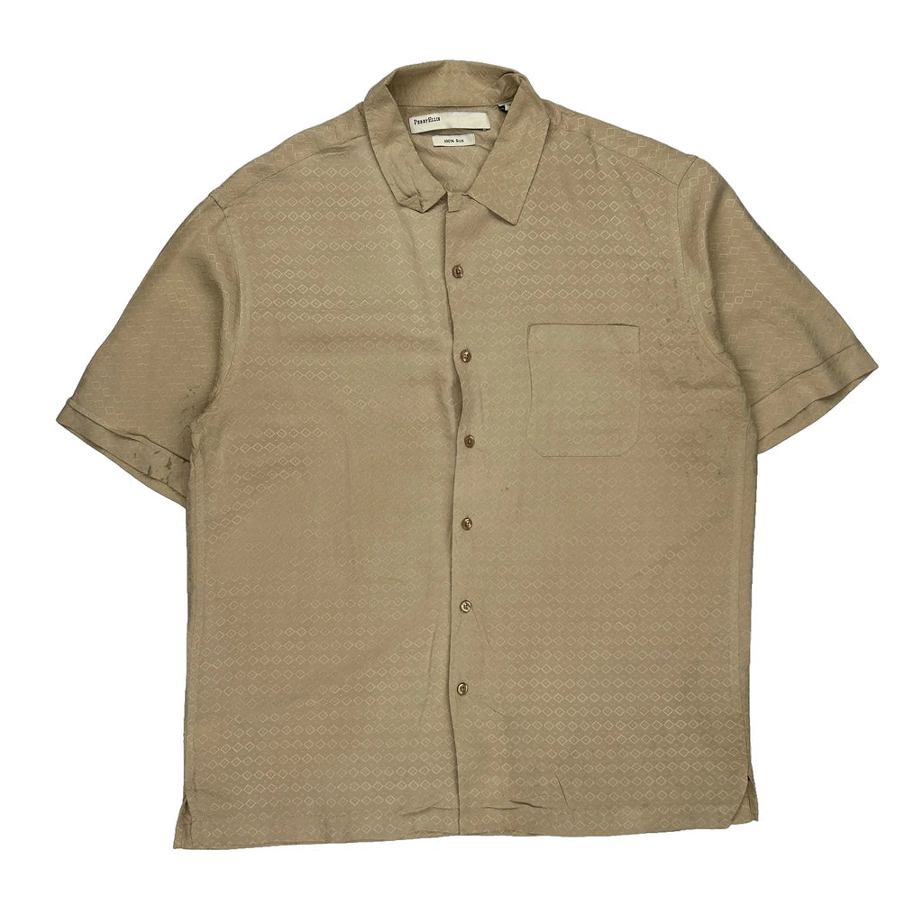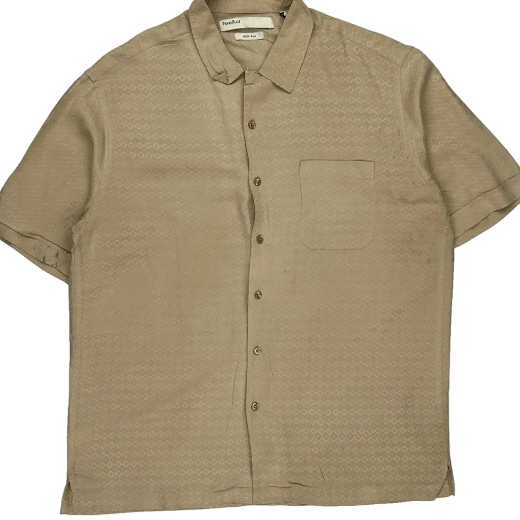 Perry Eliis Short Sleeve Shirt - Large Beige Silk