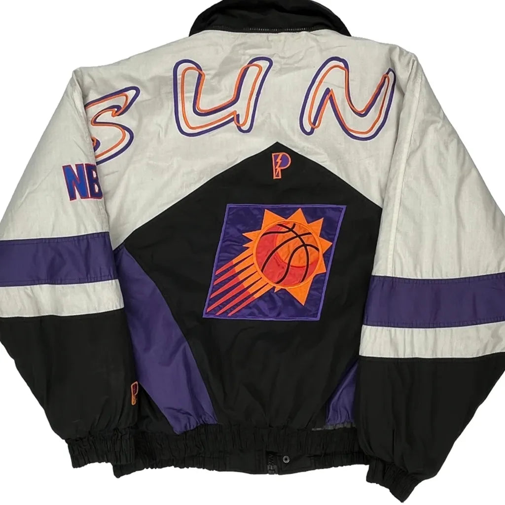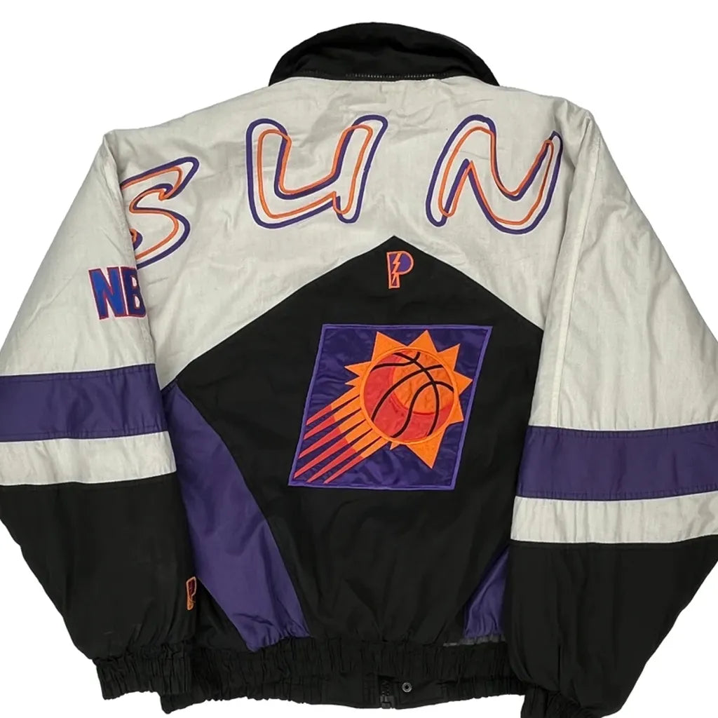 Vintage Phoenix Suns Puffer Jacket With Embroidered Logos.