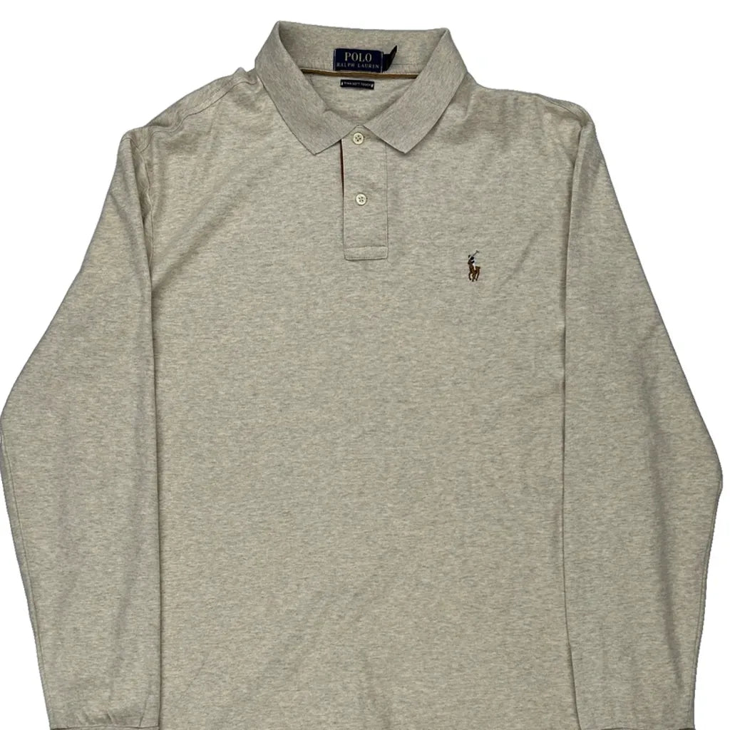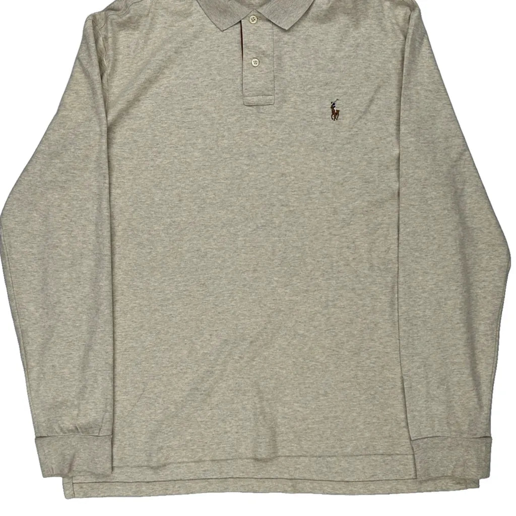 Pima Soft Touch Polo By Ralph Lauren Long Sleeve Polo Shirt - XL Beige Cotton