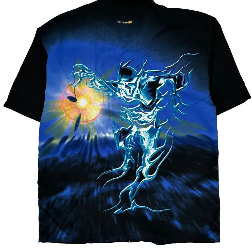 Point Zero Graphic Hawaiian Shirt - Large Black Polyester