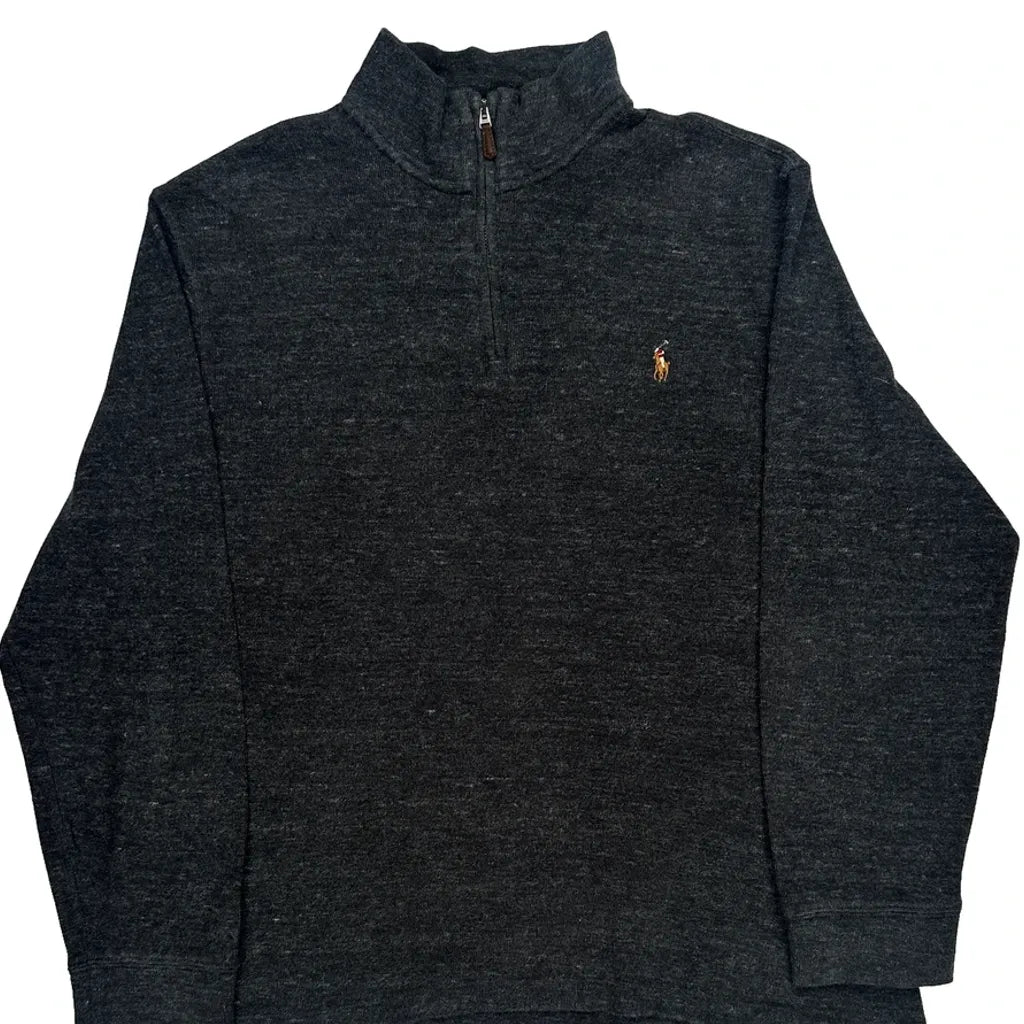Polo By Ralph Lauren 1/4 Zip - Large Grey Cotton Blend