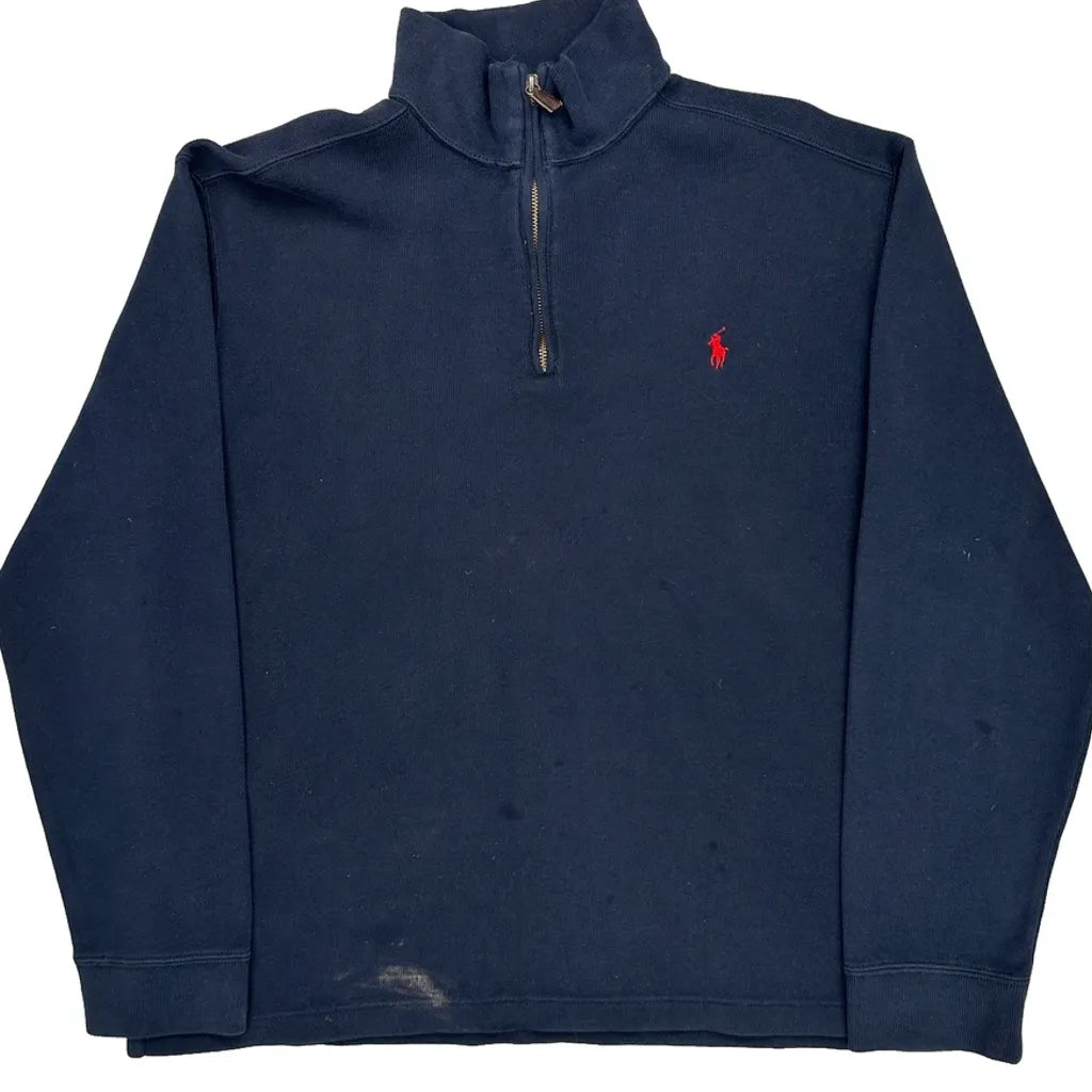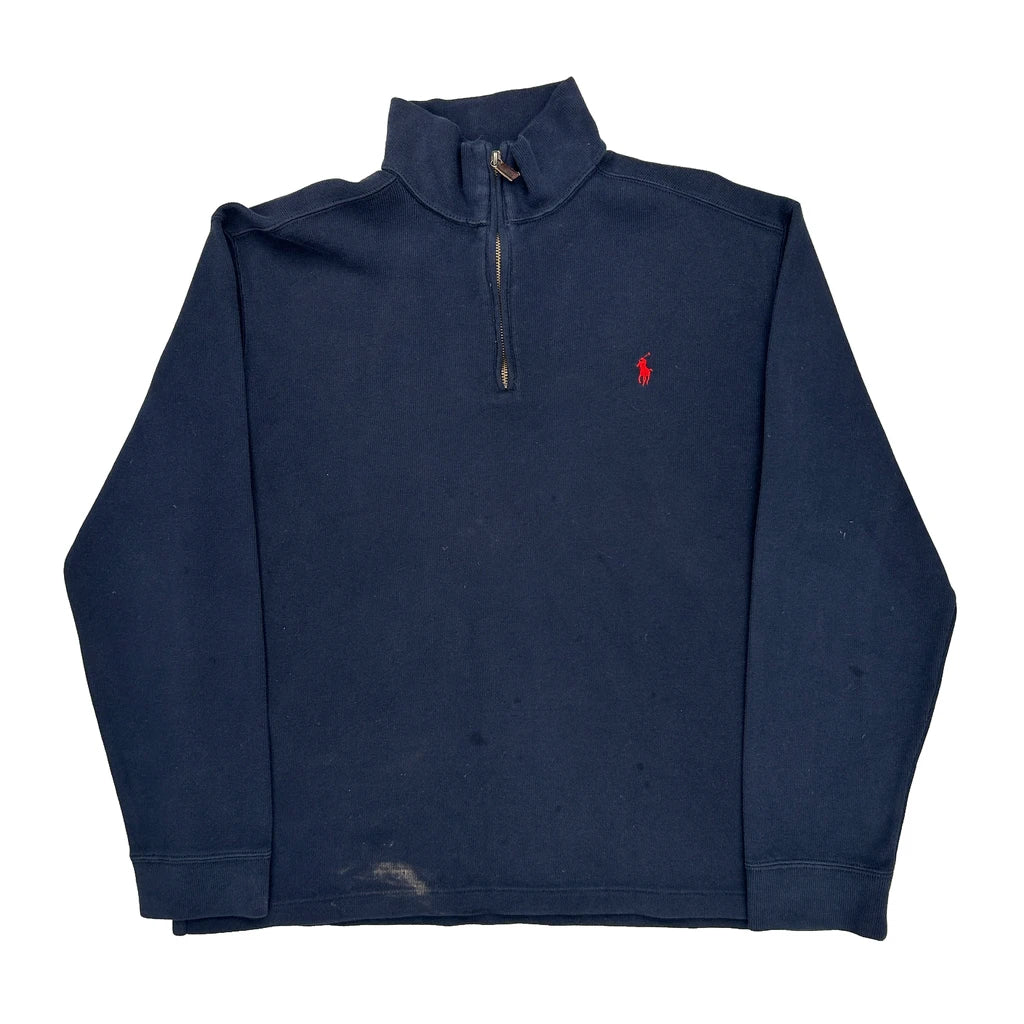 Polo By Ralph Lauren 1/4 Zip - Large Navy Cotton