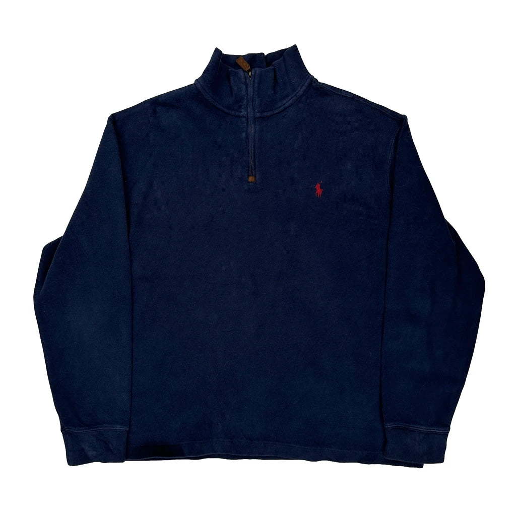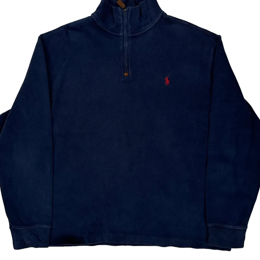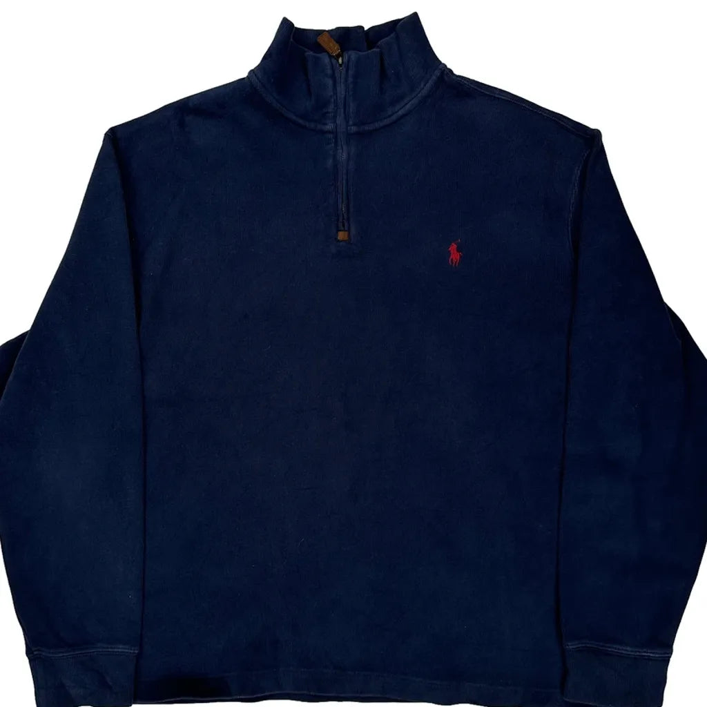 Polo By Ralph Lauren 1/4 Zip - Large Navy Cotton