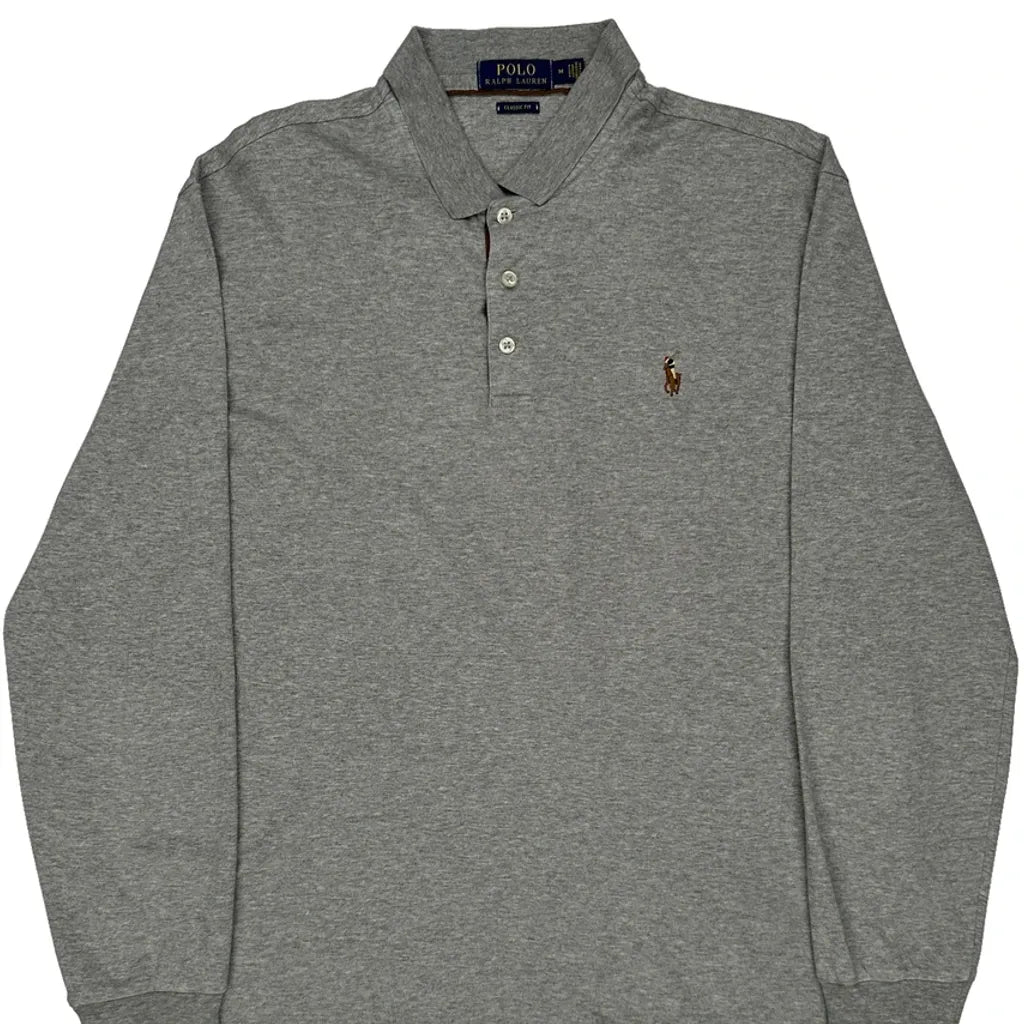 Polo By Ralph Lauren Long Sleeve Polo Shirt - Medium Grey Cotton