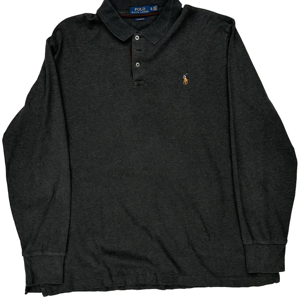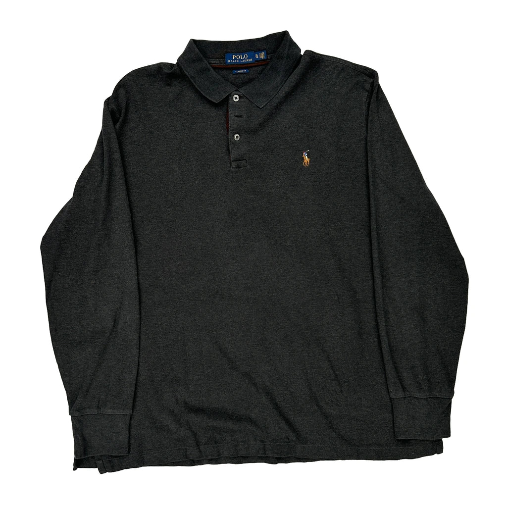 Polo By Ralph Lauren Long Sleeve Polo Shirt - XL Grey Cotton