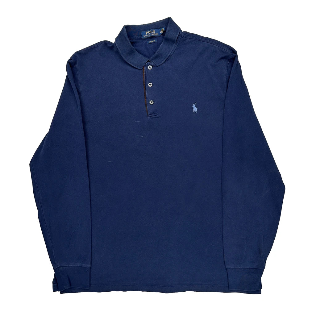 Polo By Ralph Lauren Long Sleeve Polo Shirt - Large Navy Cotton