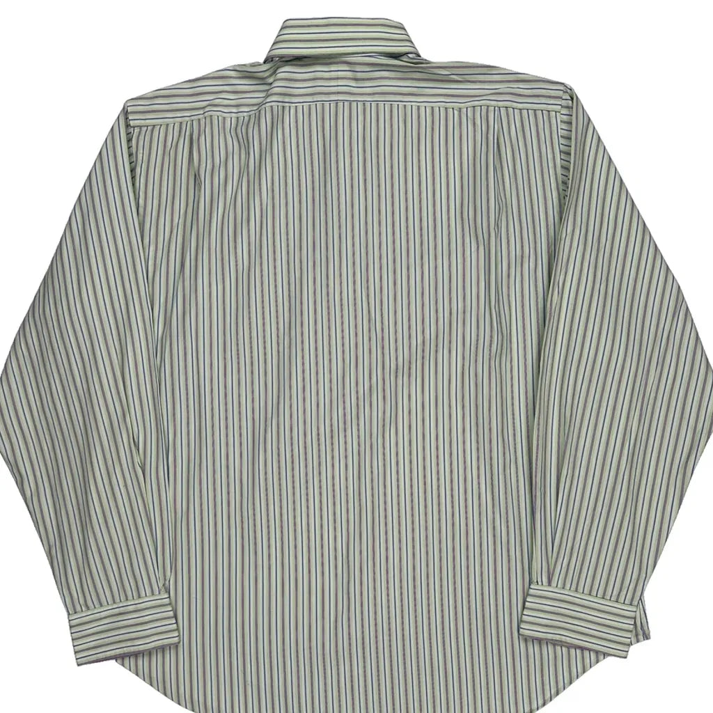 Green, Blue, And Purple Striped Shirt, No Visible Marks Or Faults