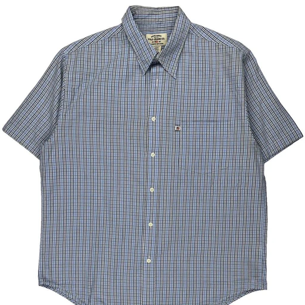 Polo By Ralph Lauren Checked Short Sleeve Shirt - XL Blue Cotton