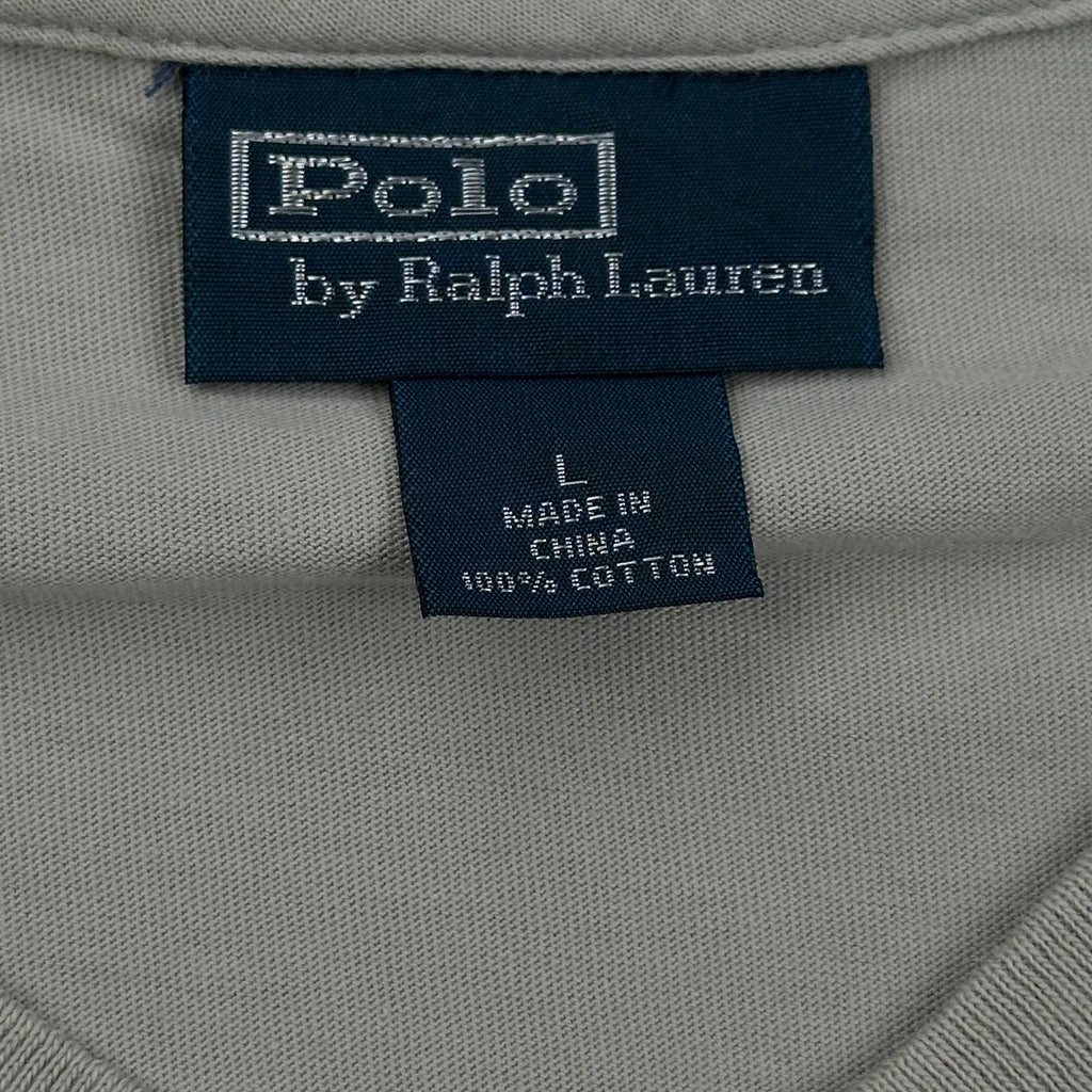 Polo By Ralph Lauren V-Neck T-Shirt - Large Beige Cotton
