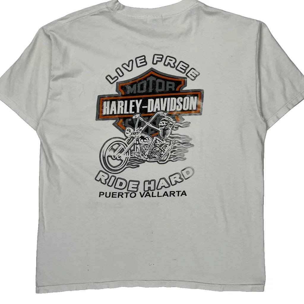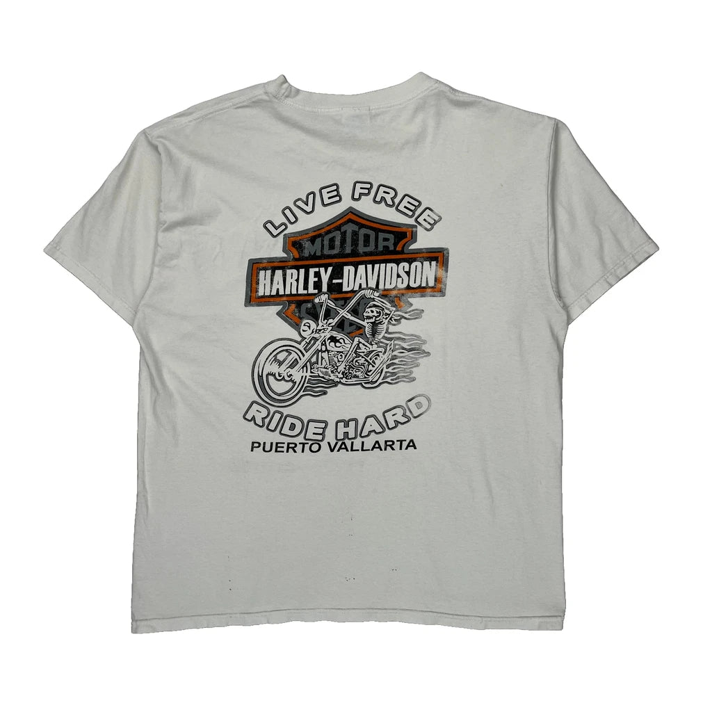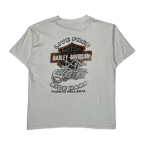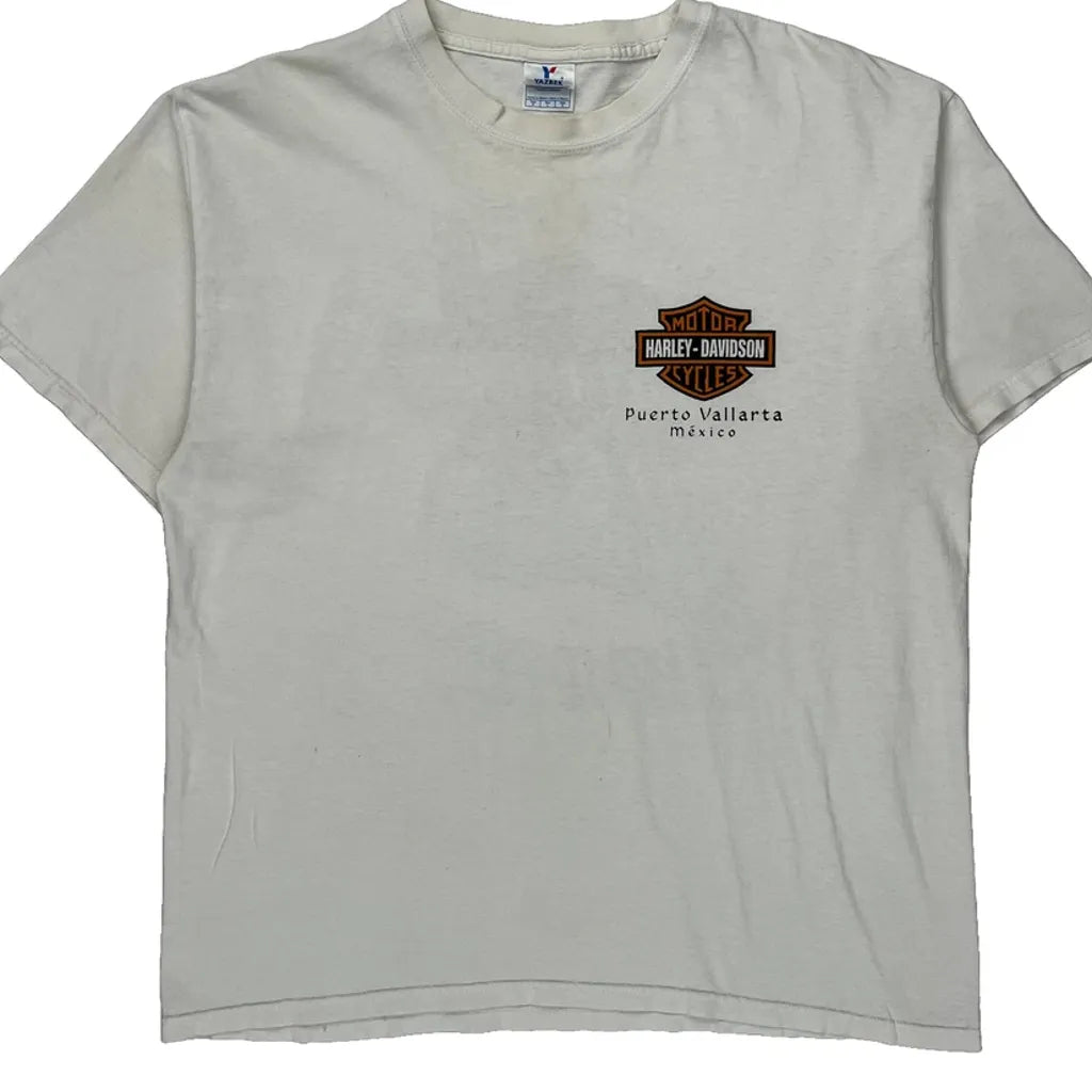 Puerto Vallarta Harley Davidson Graphic T-Shirt - Large White Cotton