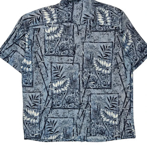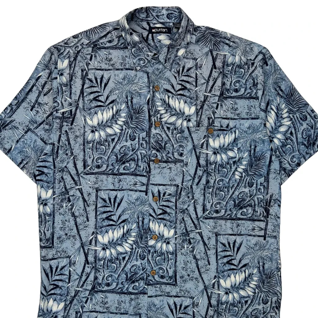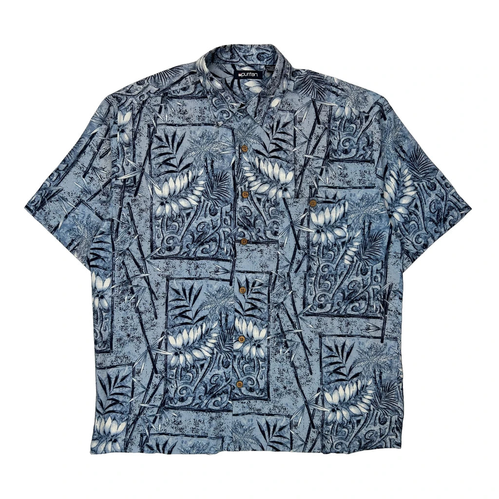 Puritan Floral Hawaiian Shirt - Large Blue Viscose