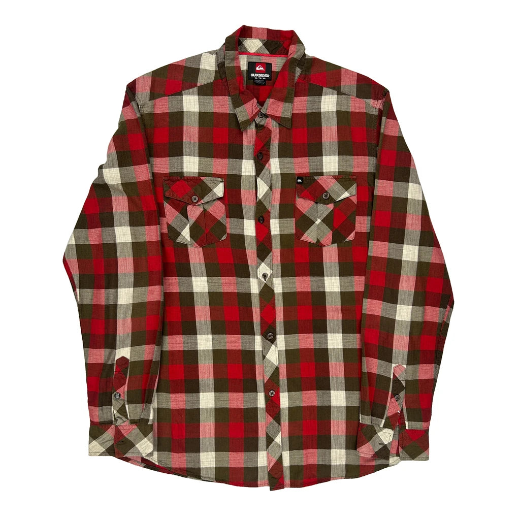 Quiksilver Checked Flannel Shirt - XL Green Cotton