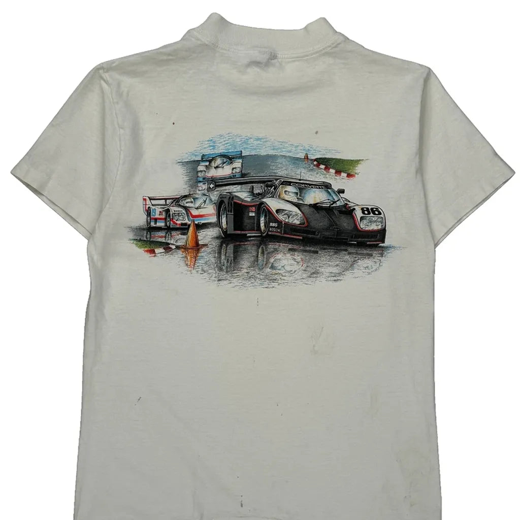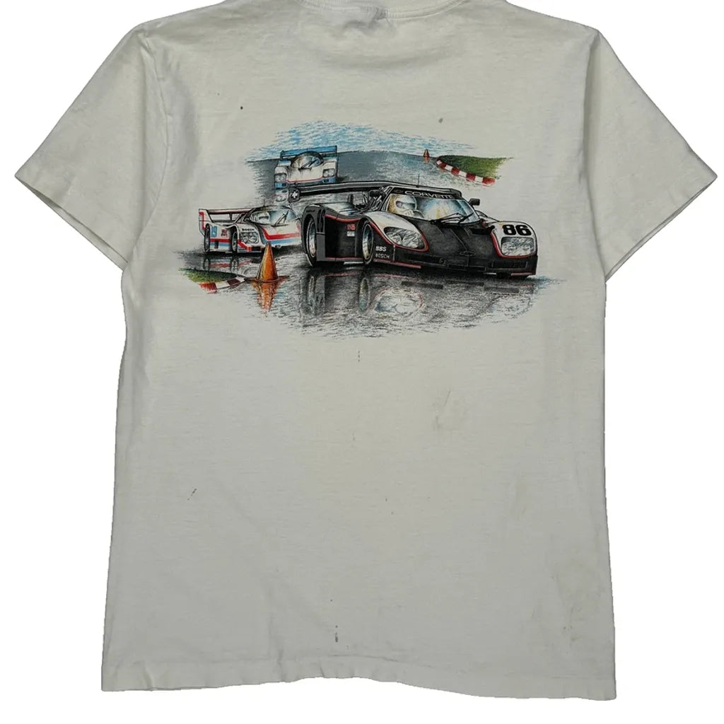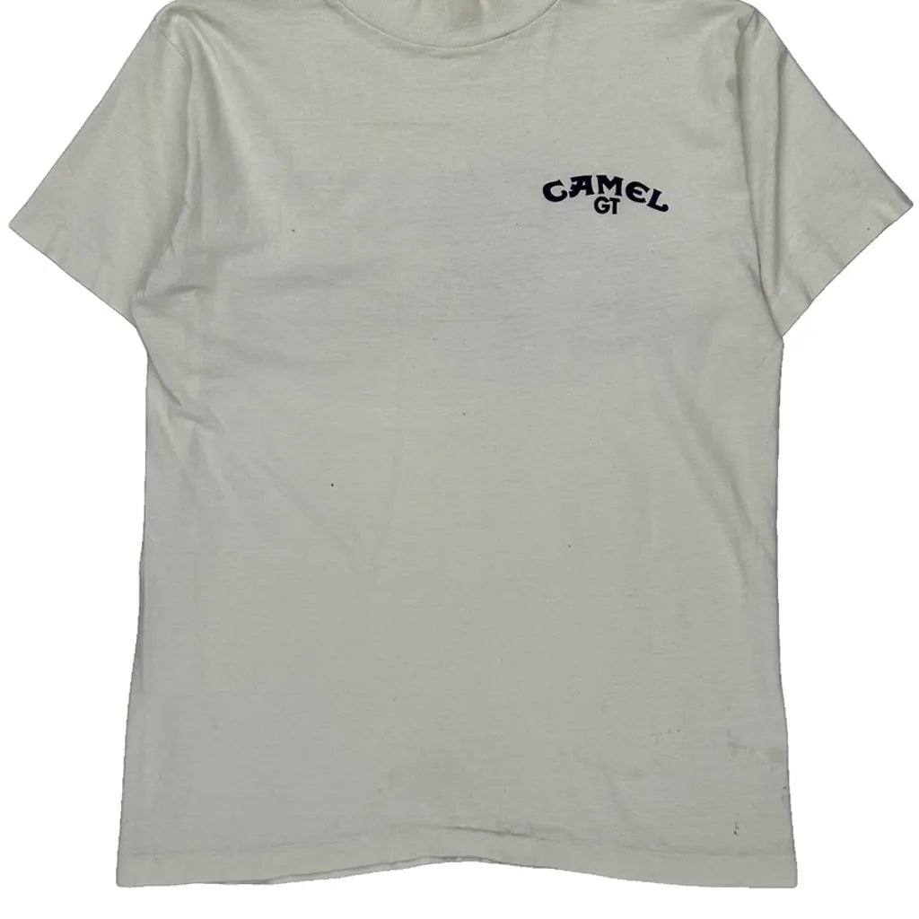 Racing Camel Graphic T-Shirt - Medium White Cotton