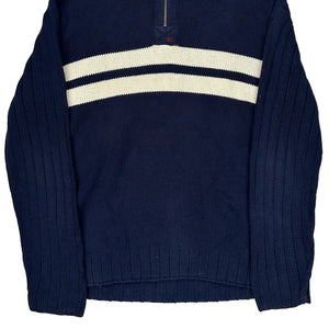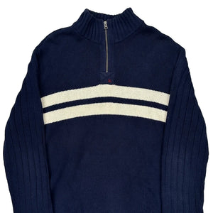 Ralph Lauren Striped 1/4 Zip - 2XL White Cotton