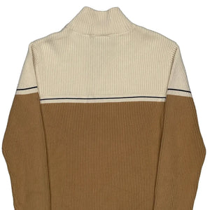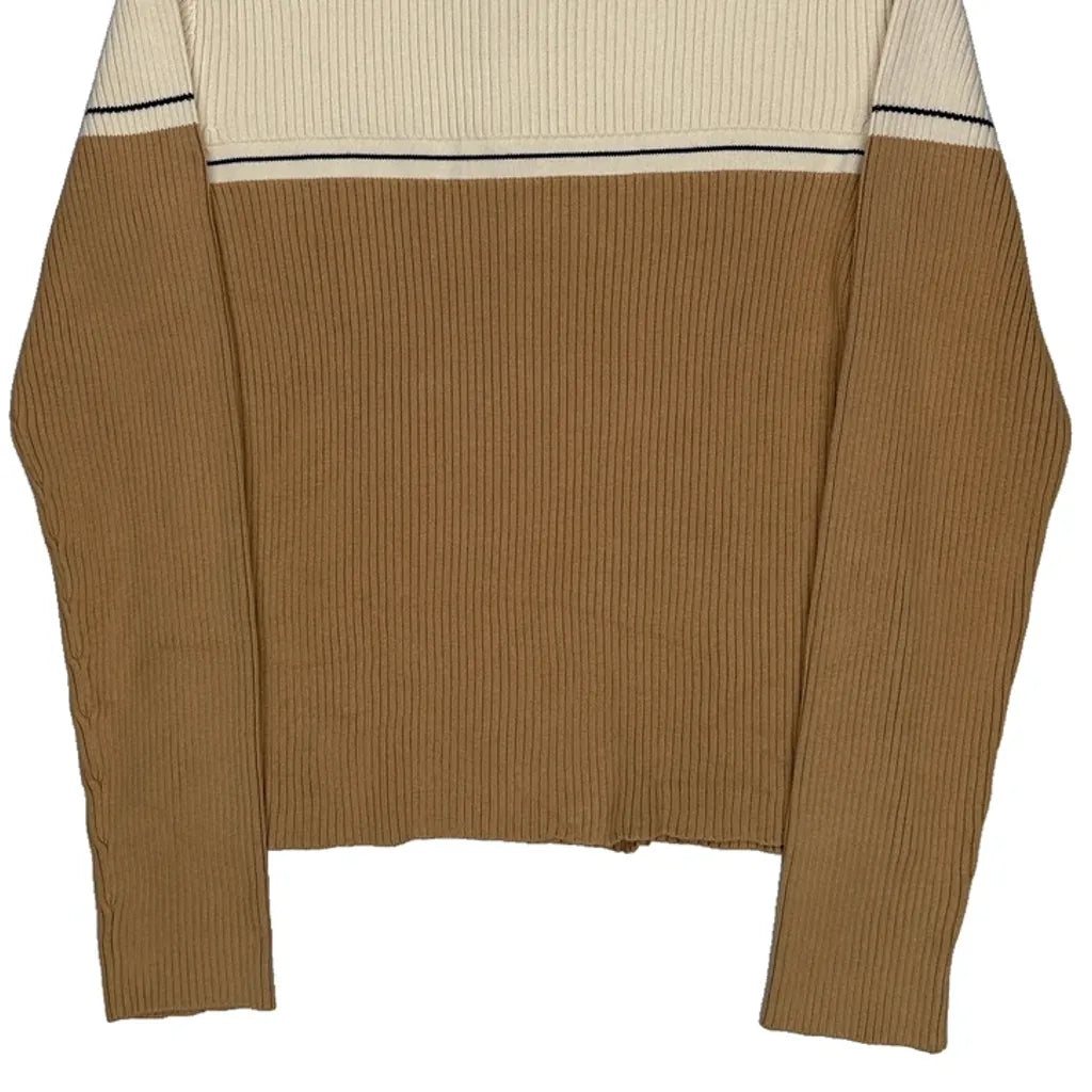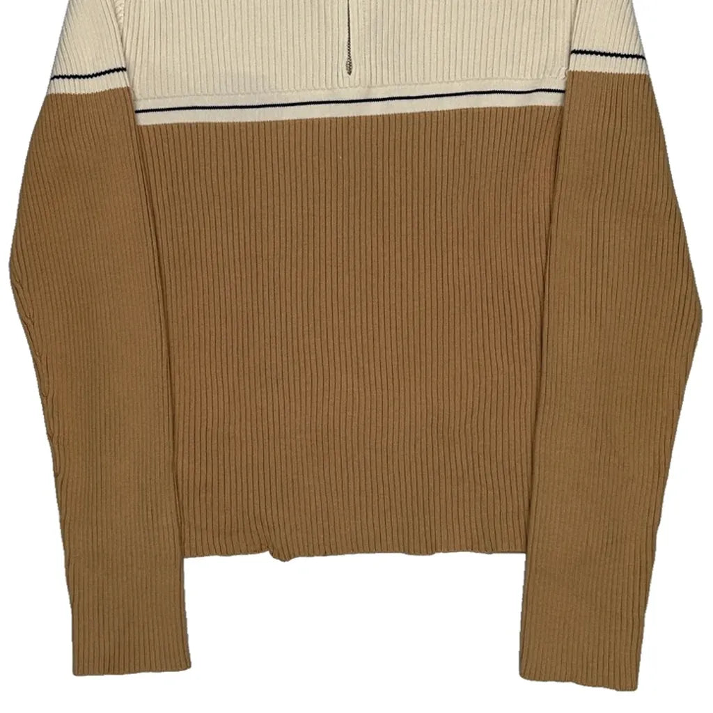 Ralph Lauren Striped 1/4 Zip - Large Brown Cotton