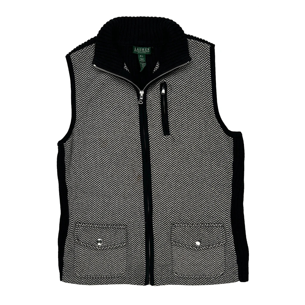 Ralph Lauren Petite Herringbone Mock Neck Gilet - Large Black & White Cotton