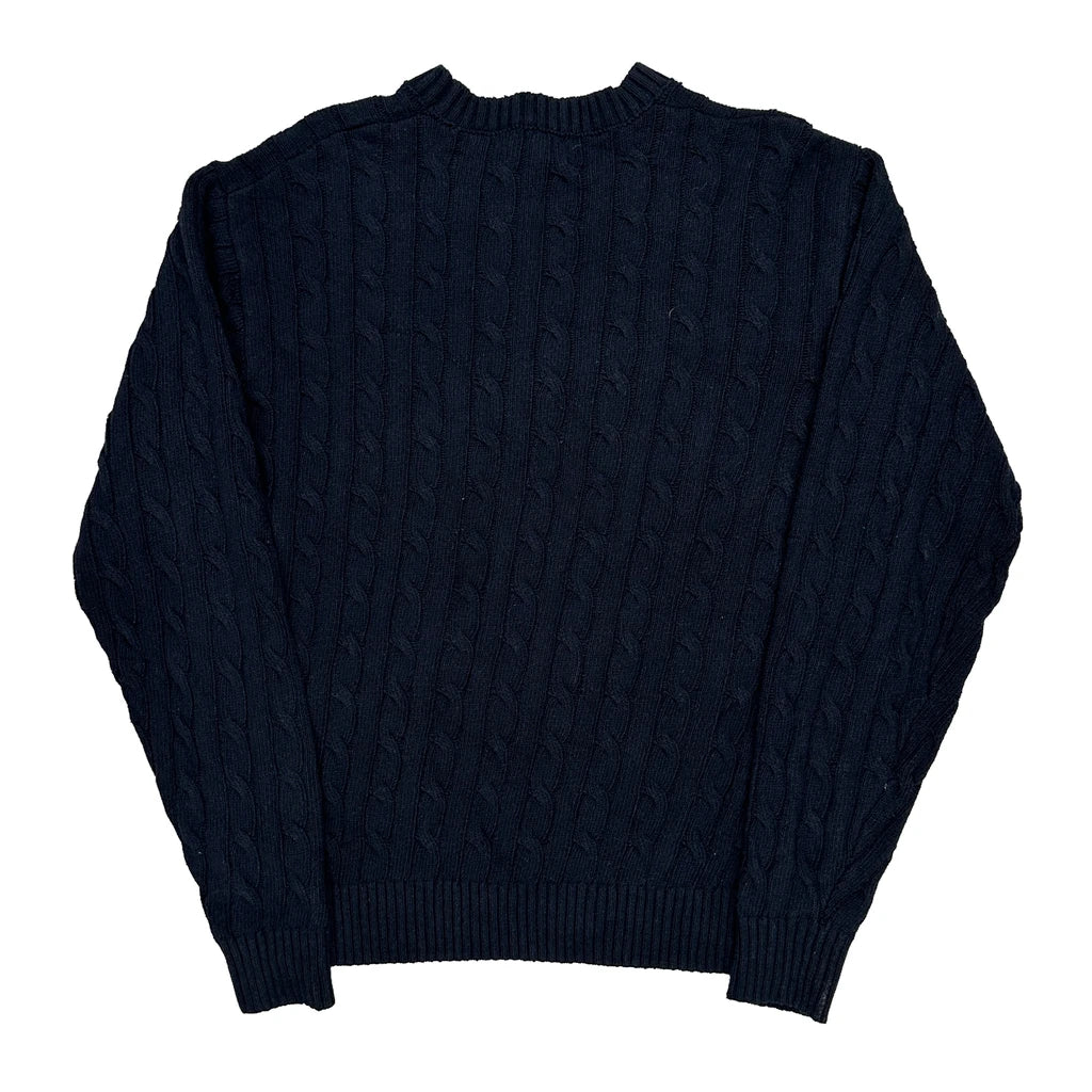 Navy Cable Knit Jumper With Embroidered Logo