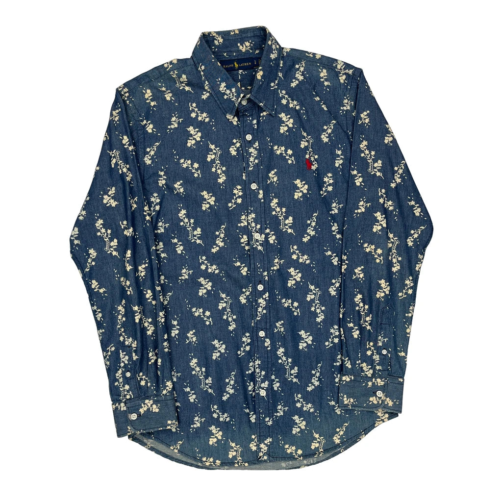 Ralph Lauren Floral Patterned Shirt - Large Blue Cotton
