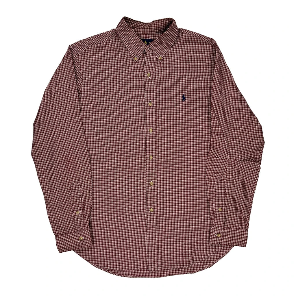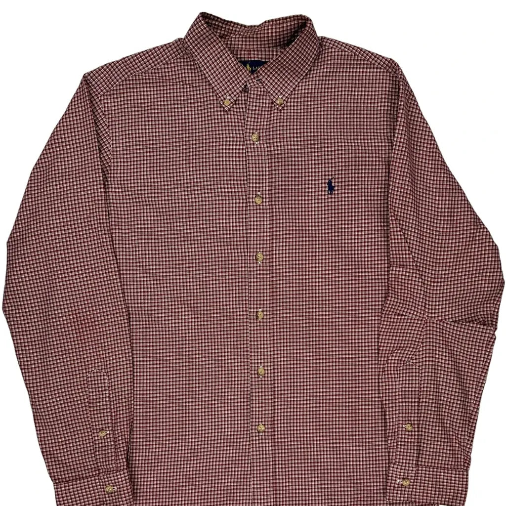 Ralph Lauren Checked Shirt - Large Burgundy Cotton