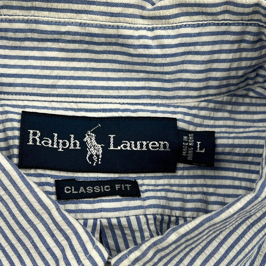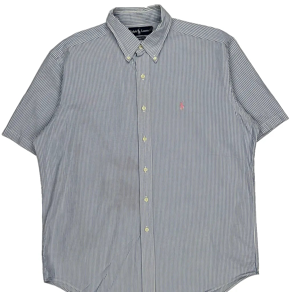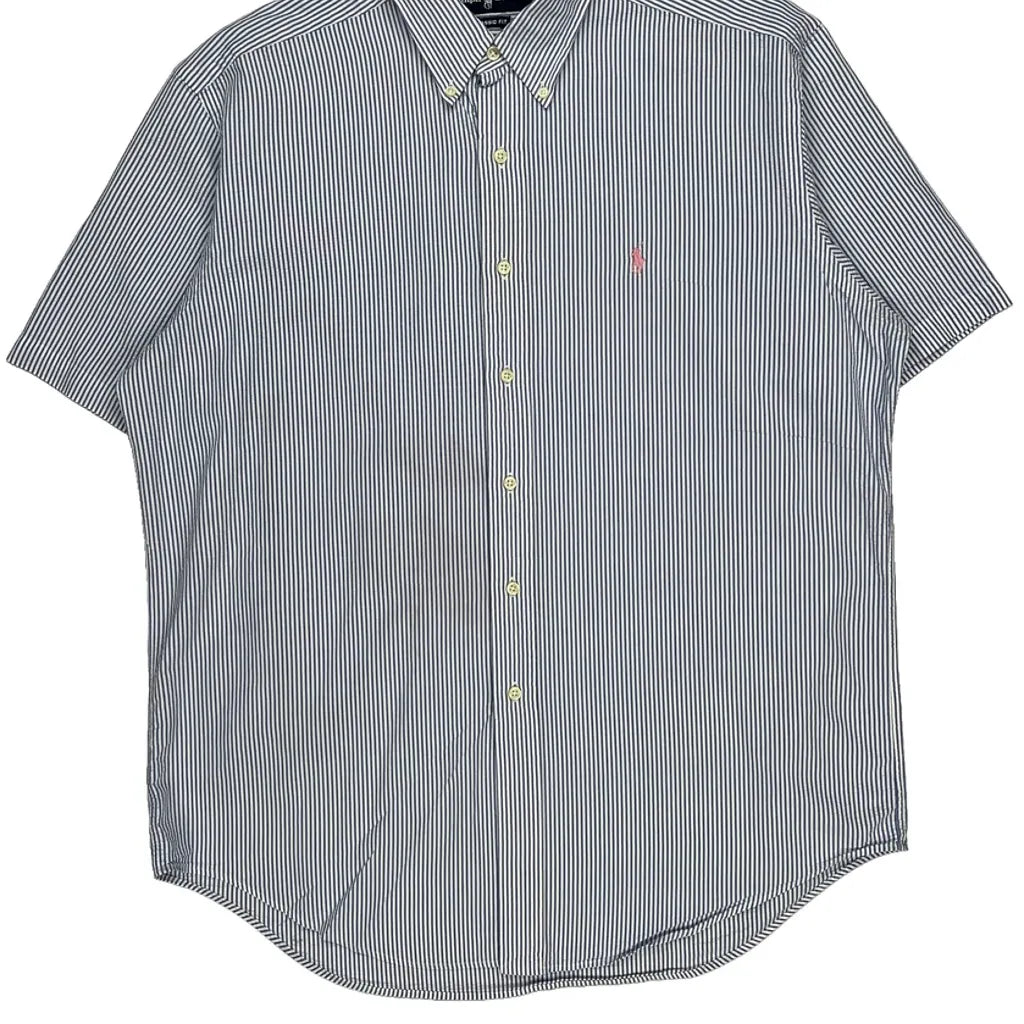 Ralph Lauren Striped Short Sleeve Shirt - Large Blue Cotton