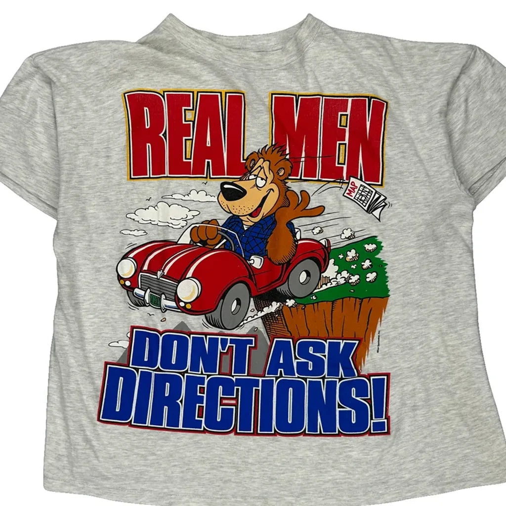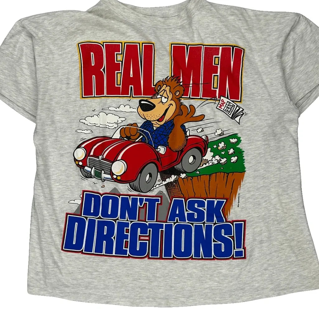 Bear Driving A Car Graphic With Text 'Real Men Don'T Ask Directions!'