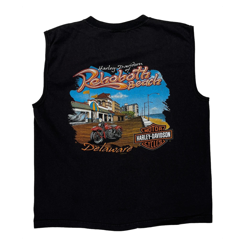 Rehoboth Beach Harley Davidson Graphic Vest - Large Black Cotton