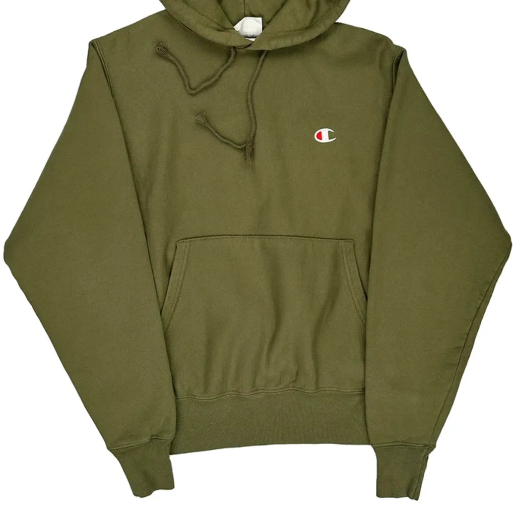 Reverse Weave Champion Hoodie - Small Khaki Cotton Blend