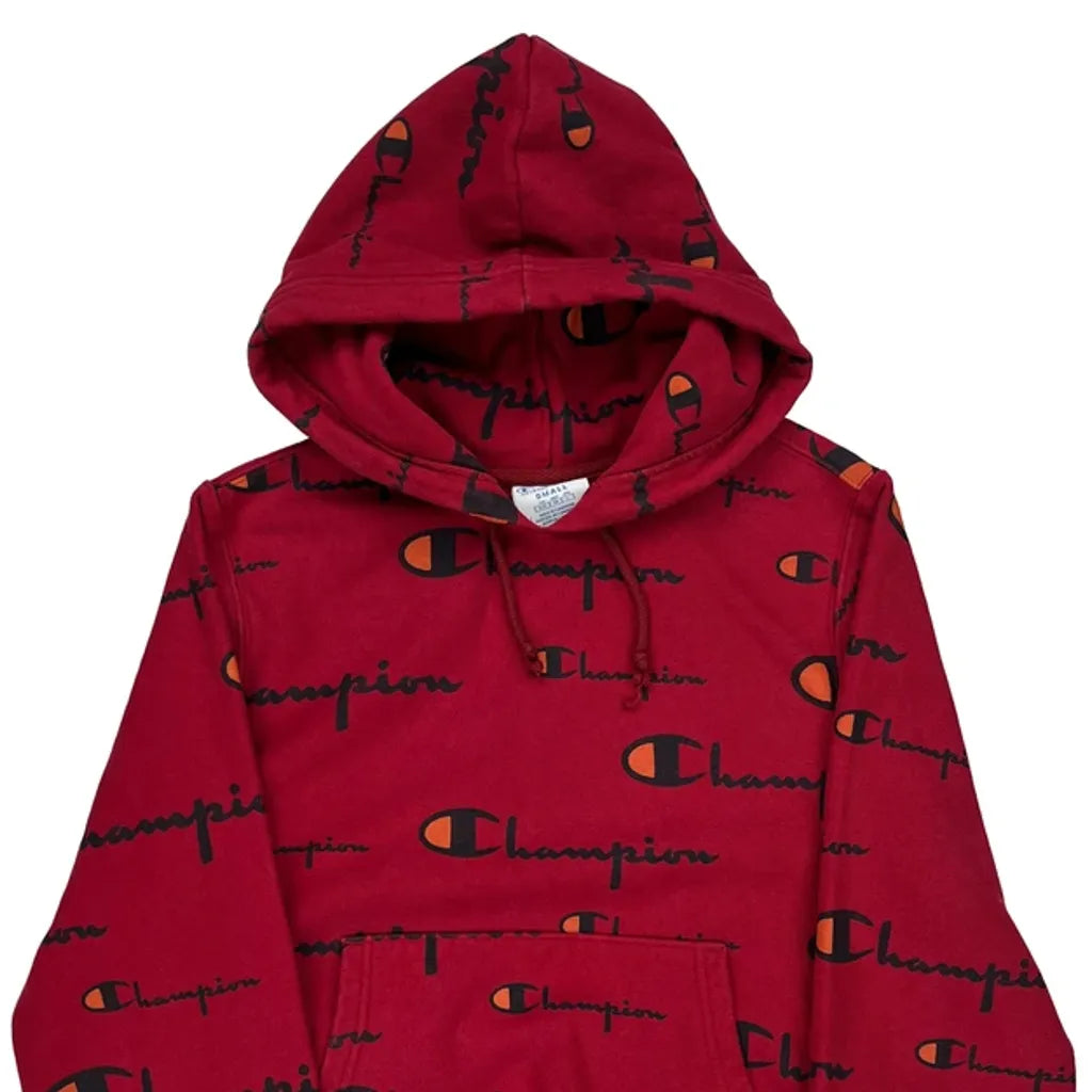Reverse Weave Champion Spellout Hoodie - Small Red Cotton
