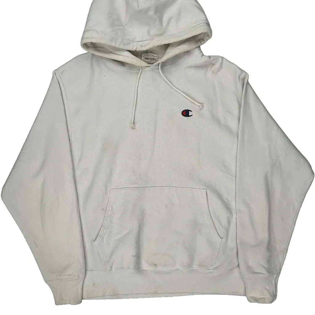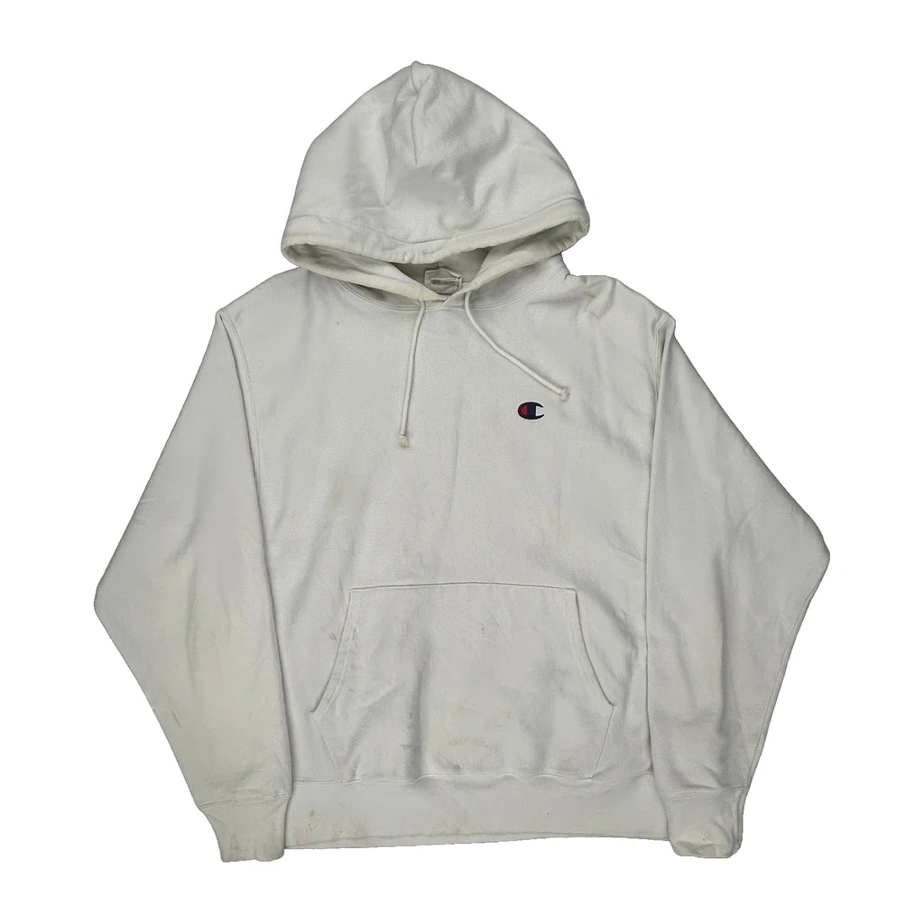 Reverse Weave Champion Hoodie - Large White Cotton