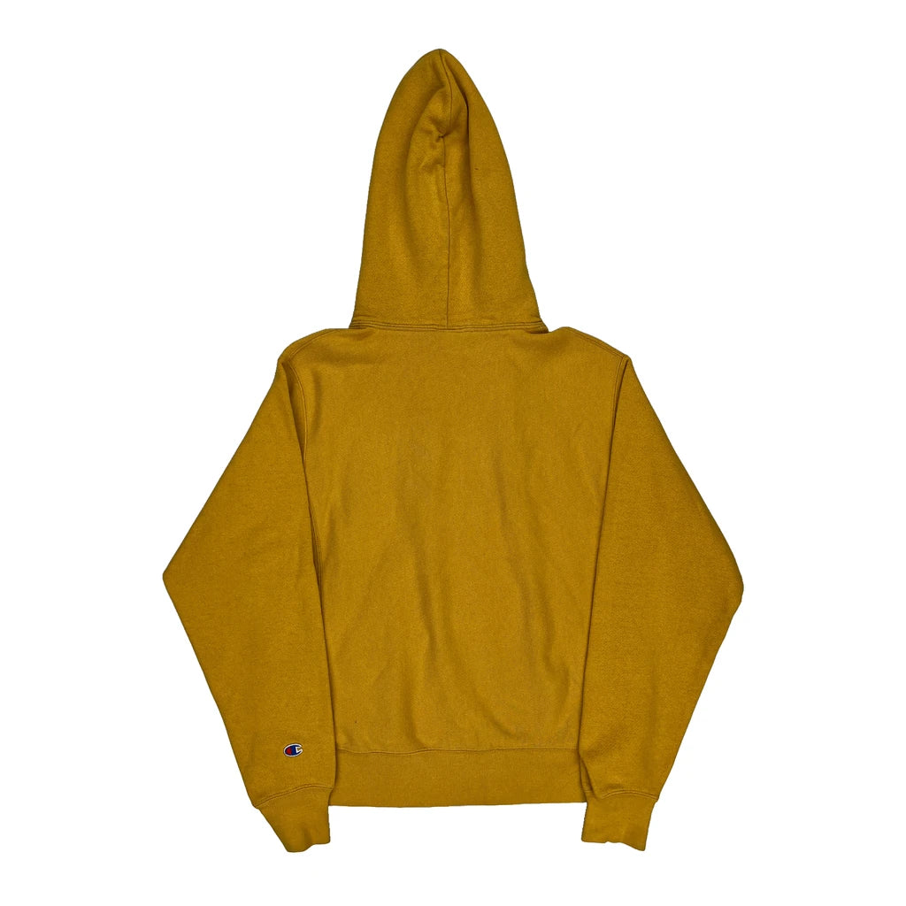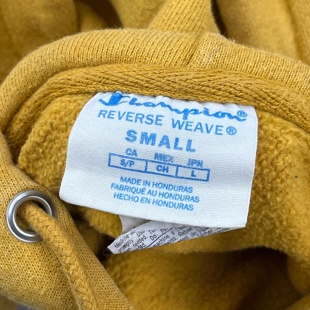 Reverse Weave Champion Spellout Hoodie - Small Yellow Cotton